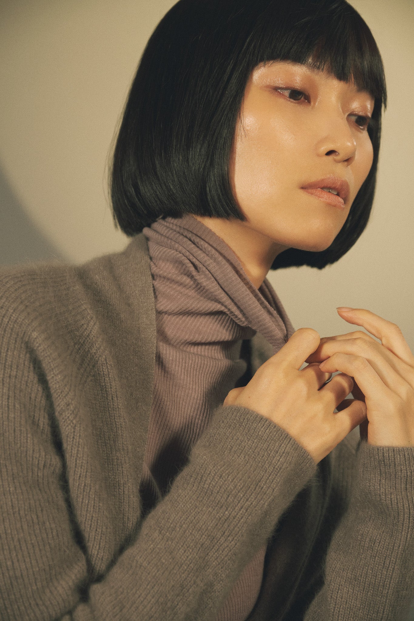 カシミヤ混タートルネックカットソー