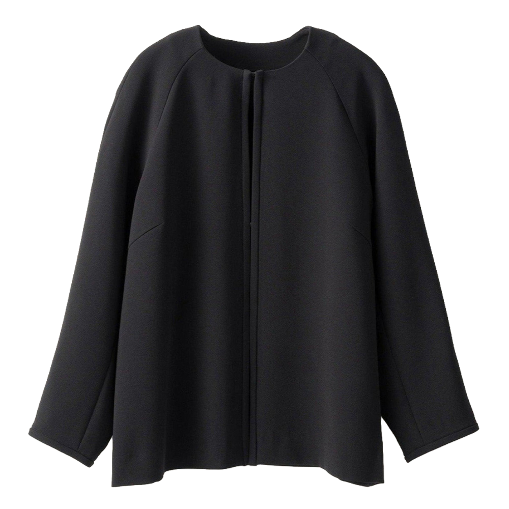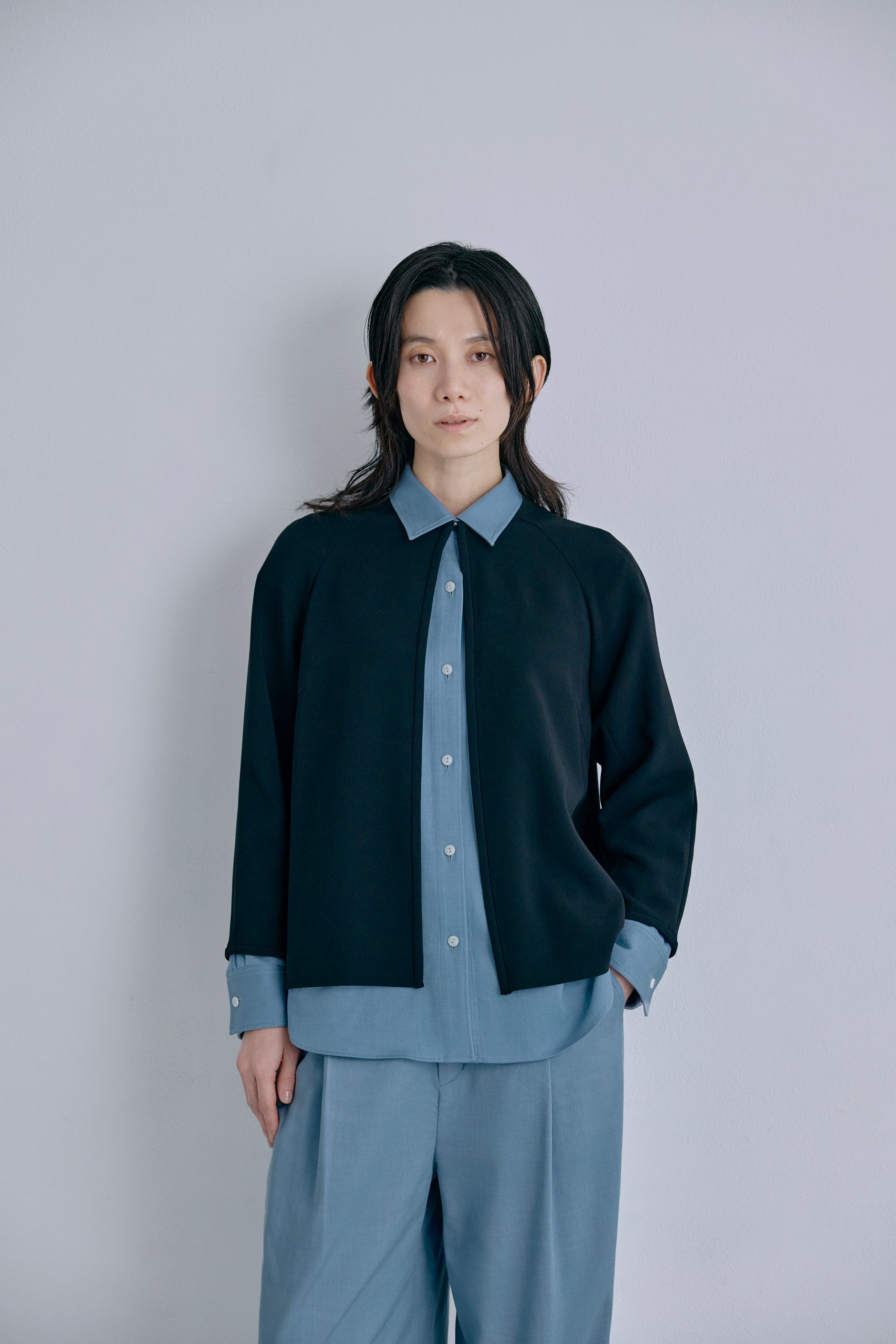 フロントホックで、前立てをすっきりと仕上げた8分袖のジャケット。身体のラインを拾いすぎない立体的な設計と、程よい厚みのダブルクロス素材が、一枚纏うだけで「整った印象」をつくります。