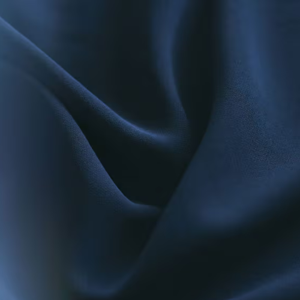 ブルーを上品にまとめてくれる深いネイビーのインナー&ジャケットを合わせ、凛とした佇まいに。シンプルなシルバーアクセサリーがおすすめ。