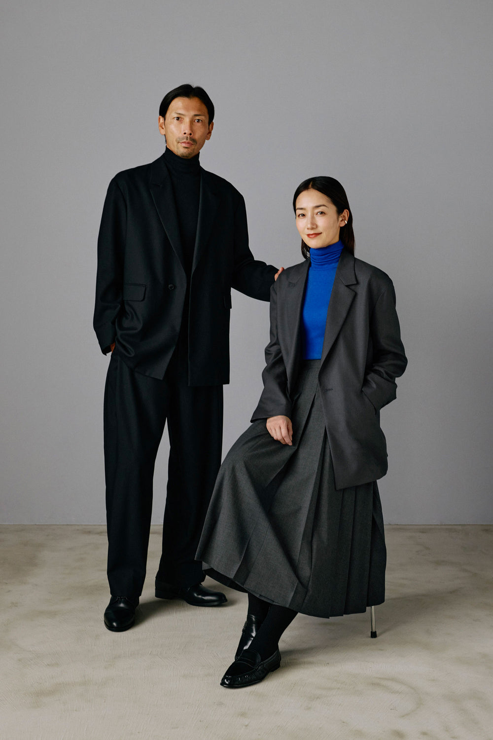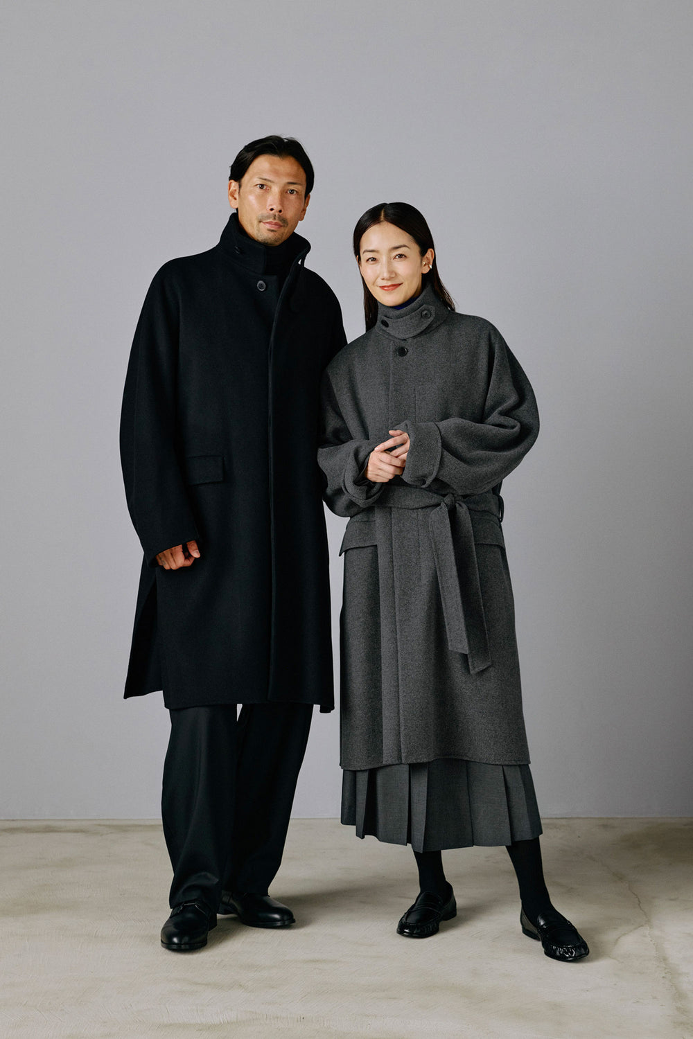 まるで自分のためにあつらえたかのように身体に寄り添う立体的なシルエットは、共有して着てもそれぞれの“らしさ”を引き立てます。