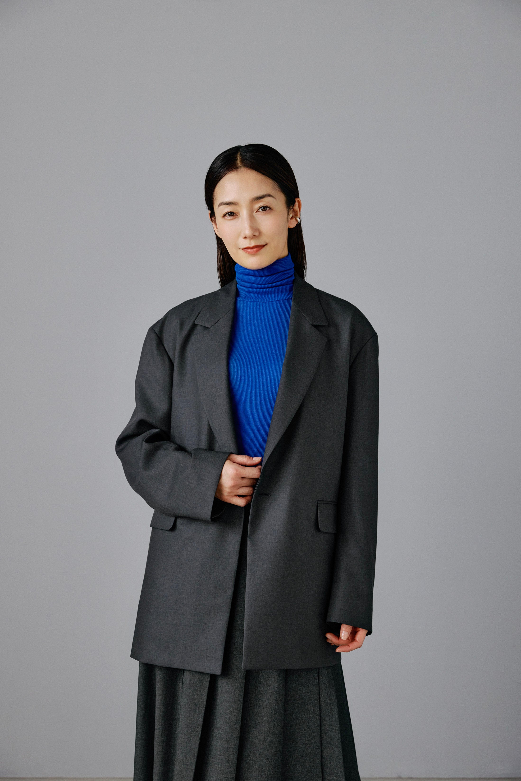 ジェンダーにとらわれない新しいバランスを提示する「ウールツイルテーラードオーバージャケット」は、構築的でありながら驚くほど軽やかな着心地を叶えた一着。