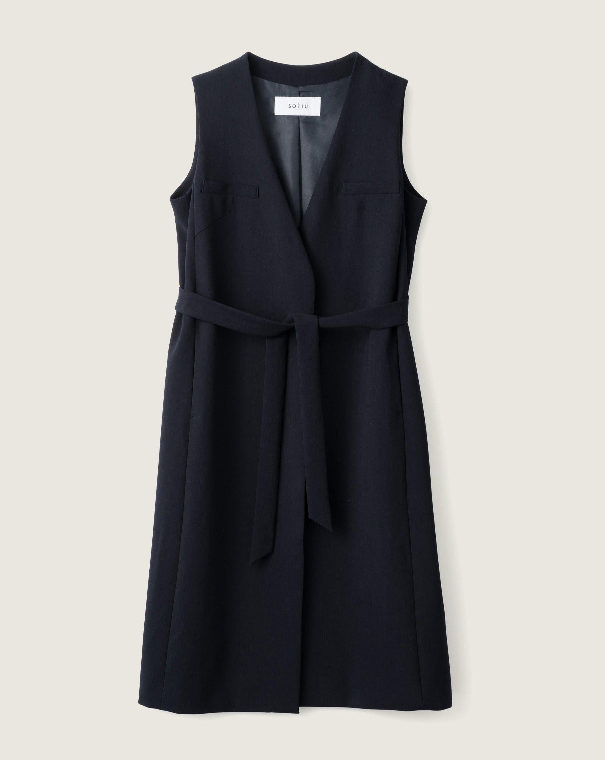 Gilet:ウールライクロングジレ(NAVY)