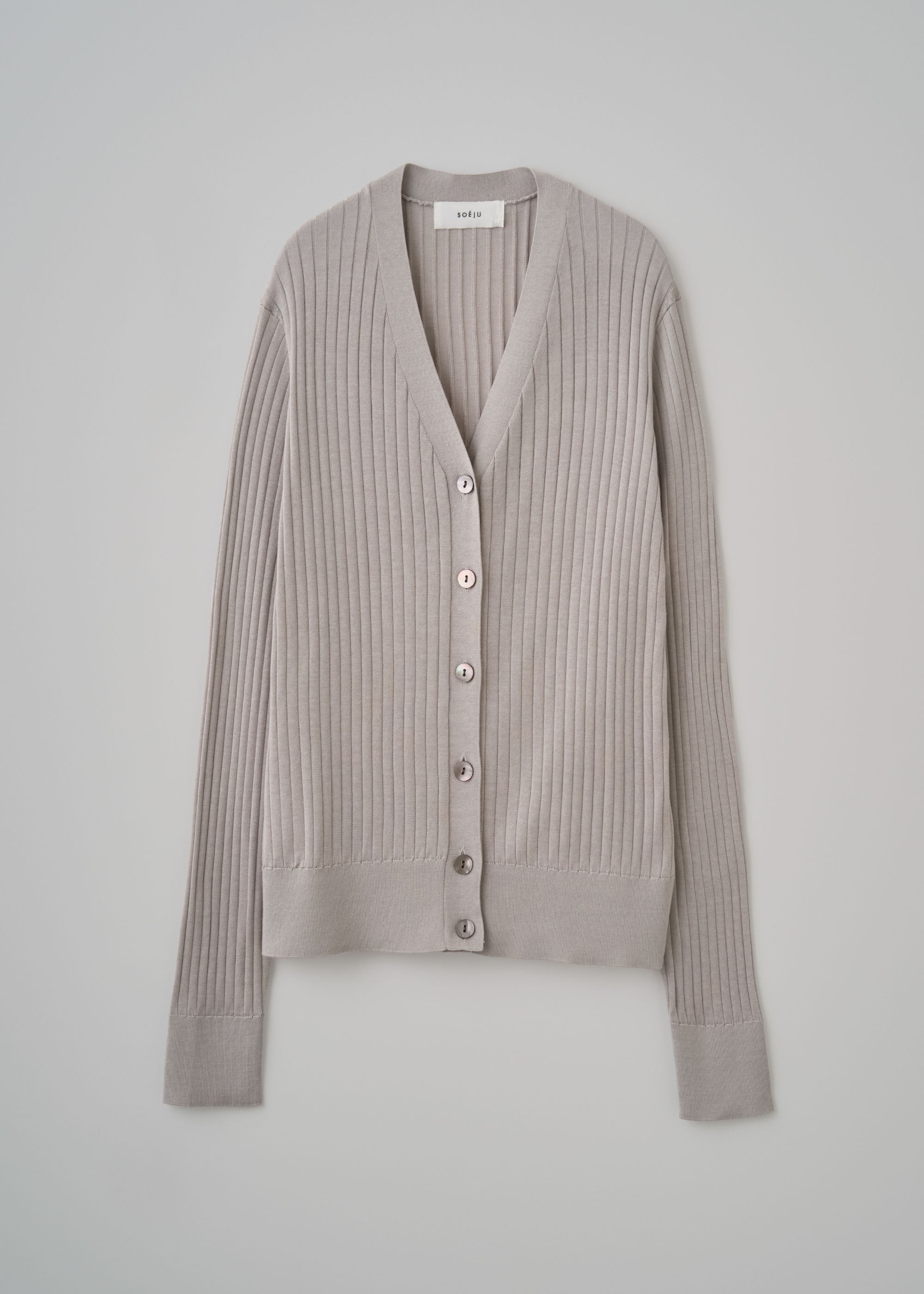 Cardigan:シルクワイドリブVネックカーディガン(L.GRAY)