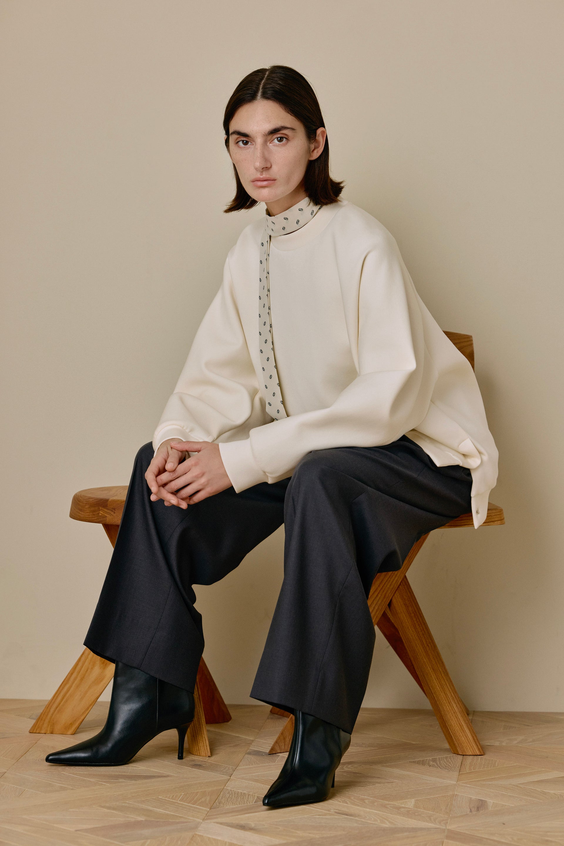 計算されたコートのライン、滑らかなニットの風合い、立体的なスウェットのフォルム——いずれも厳選素材と美しいシルエットを追求した、確かな仕上がりです。
