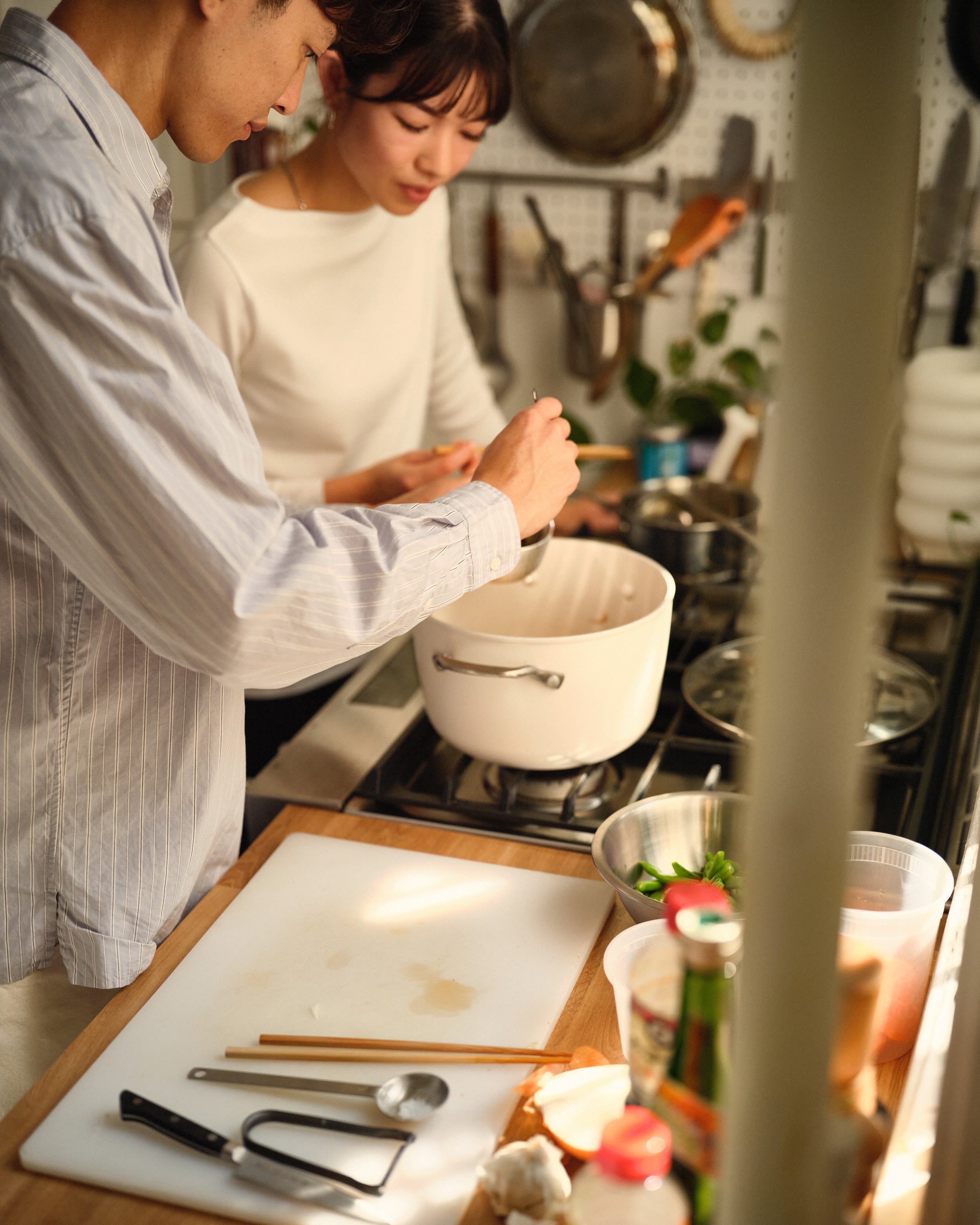 服は私にとってずっと大切な存在なんですけど、快適でちゃんと使えることが大前提ですね。家で料理をしているときも、仕事をしているときも、友達と過ごすときも、どんな場面にも一日通して馴染むような服を選んでいます