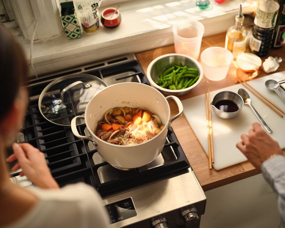 Cooking at home is definitely one of my favorite ways to reset. Making something simple, listening to music, and just stepping away from the computer. I also love spending time with friends, hosting gatherings or eating out. Since we have a backyard, sometimes we grill outside and enjoy that time together.