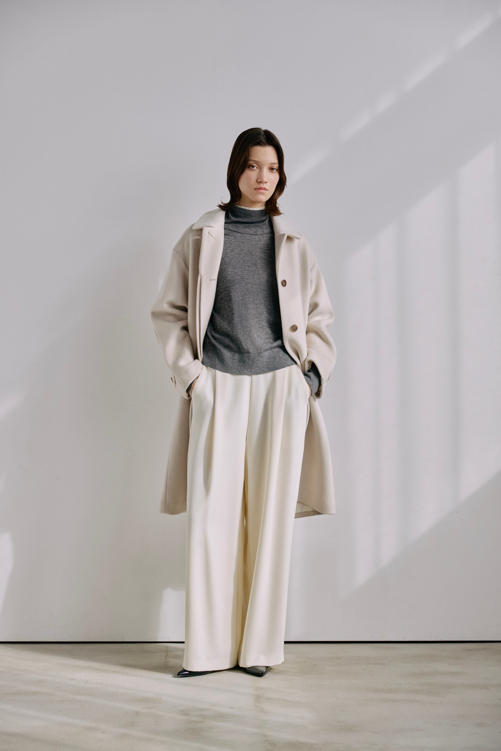 厚手のコートの中でも印象は驚くほど軽やかに。色と素材のバランスが穏やかな空気感を生み、忙しい日々に余白を与えてくれます。