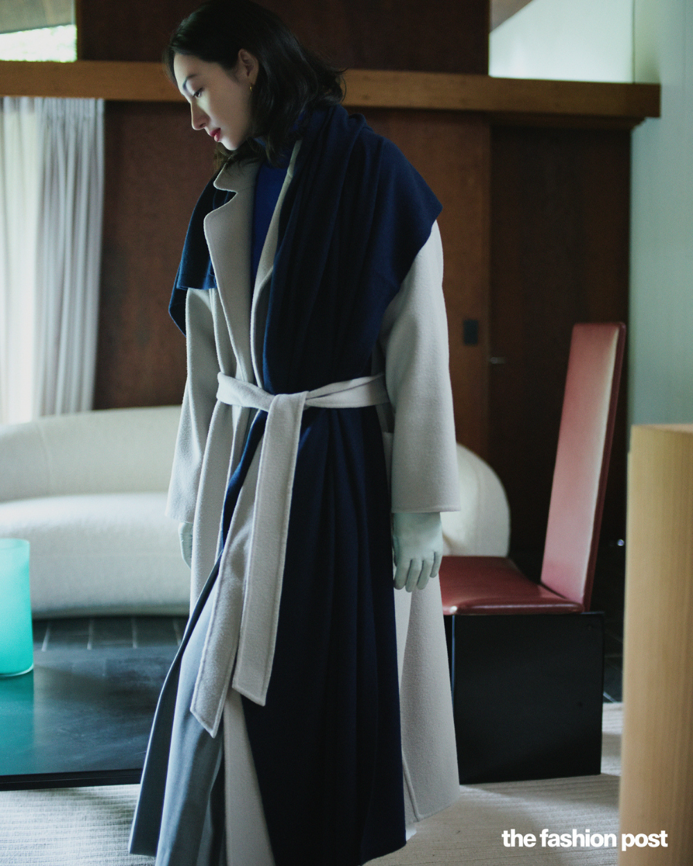 マシュマロのように柔らかな肌触りが多幸感をもたらすウールリバーローブコートは、身体のラインに寄り添う美しいシルエットが魅力的。