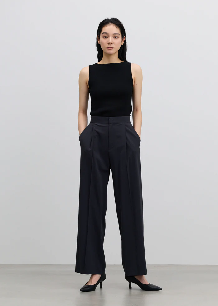 ノースリーブニットをインして、スタイルよく着こなして。ポインテッドトゥで足元を引き締めるとスタイリッシュな表情になります。