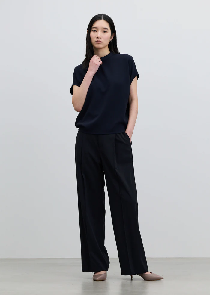スタンドカラーコクーンブラウスとも好バランス。オフィスでもデイリーでも様々なシーンでお使いいただけます。