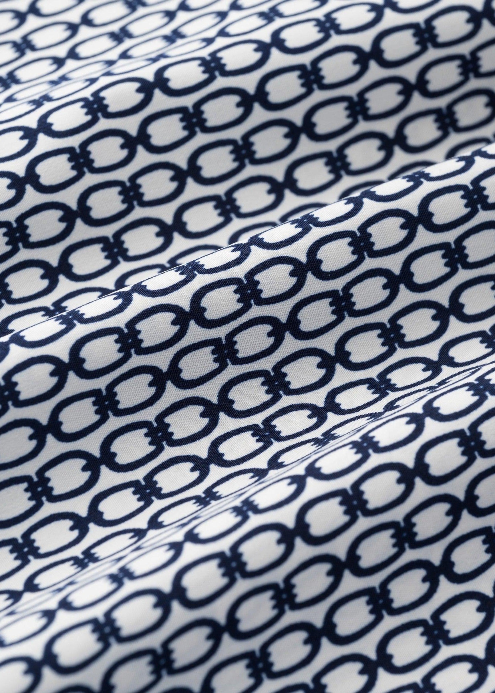 今回ソージュが選んだのは。タイムレスな定番として愛され続ける品格と、それだけでアクセントにもなる華やかさを持ち合わせたチェーン柄。今のムードで解釈した、クラシカルなプリント柄で、繊細なチェーンが上品ながらも着こなしのさりげないスパイスとなります。
