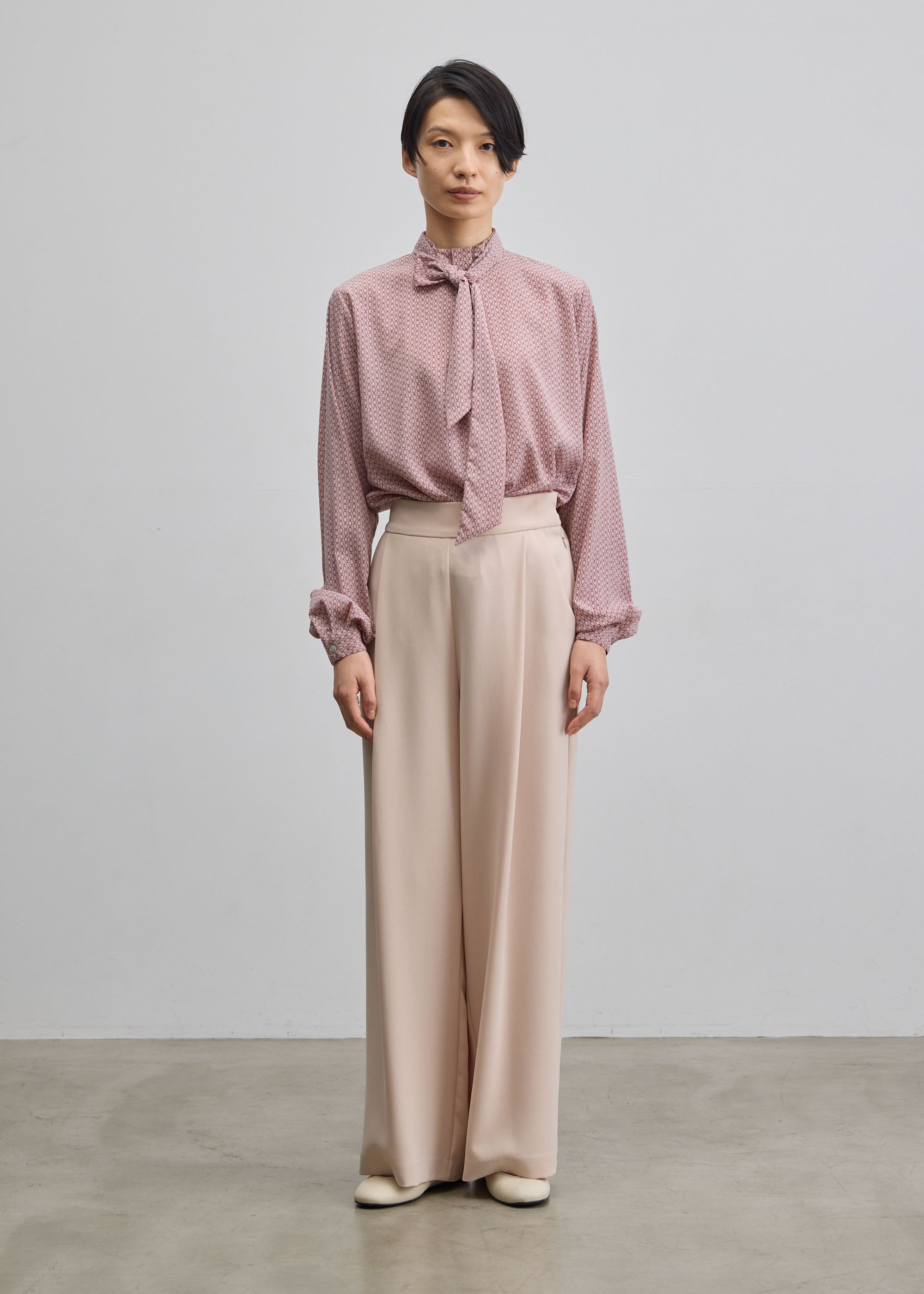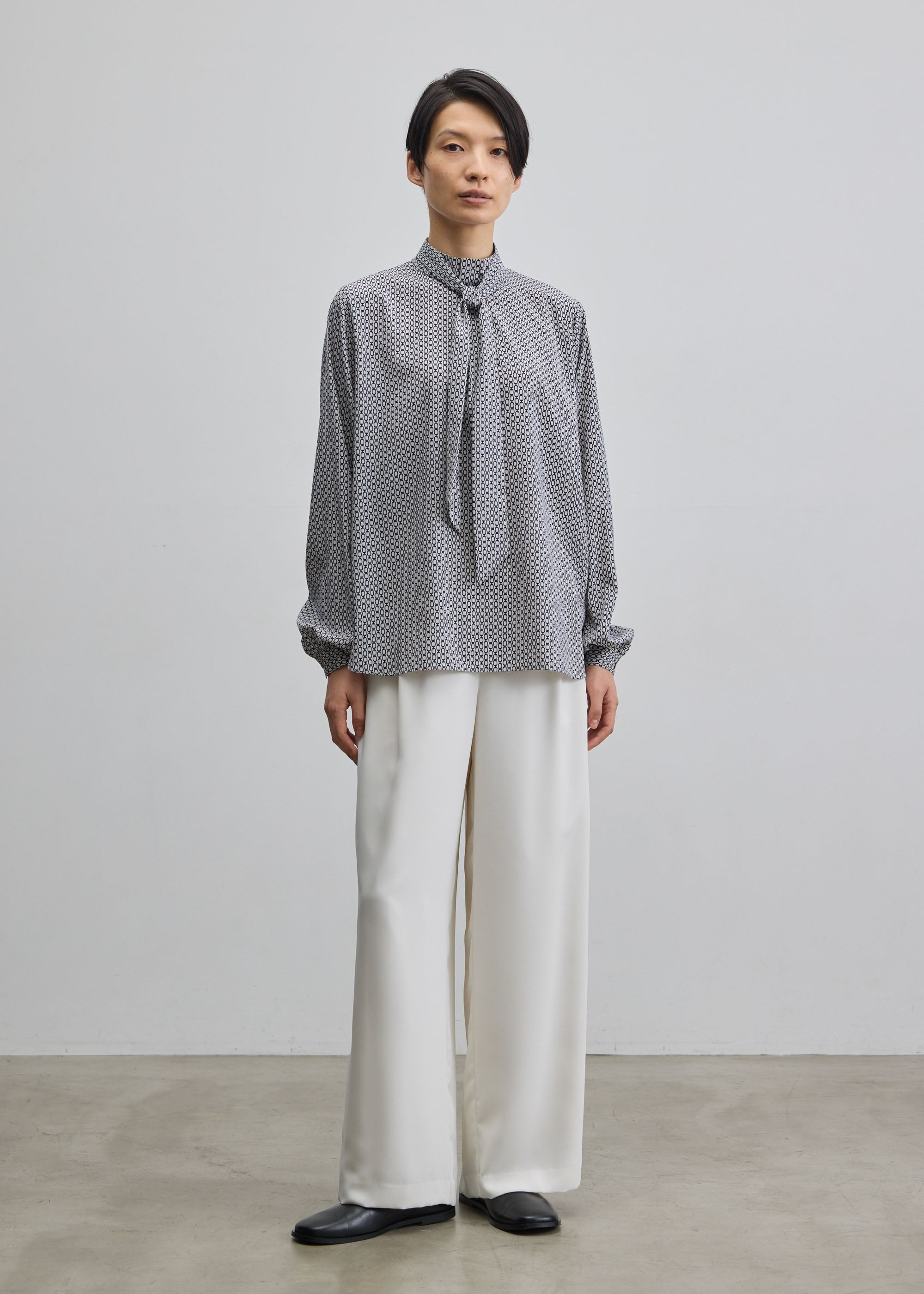 滑らかな素材感とボウタイデザイン、ゆったりとした袖がクラシカルなブラウス