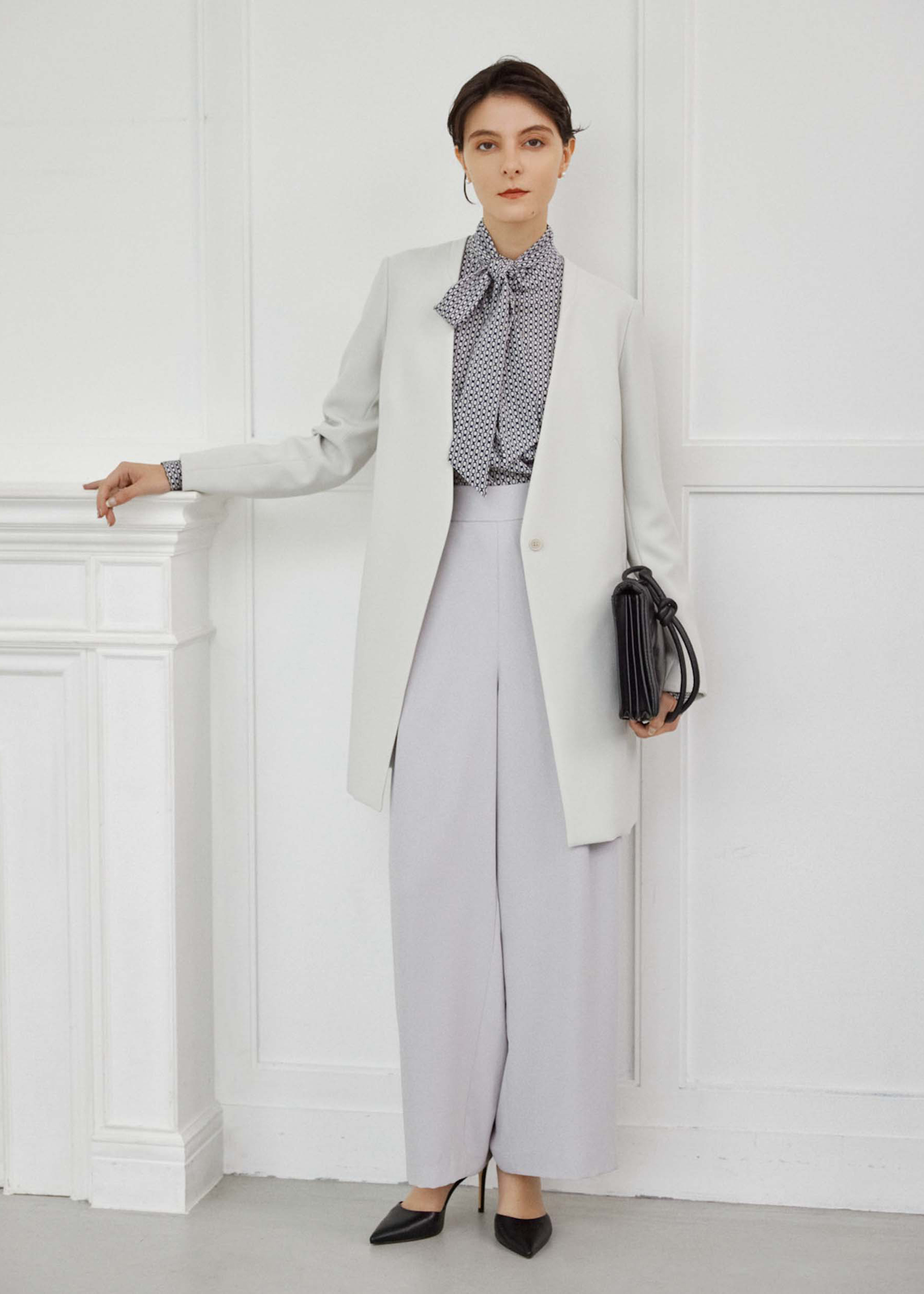 PANTS:サイドタックワイドパンツ(L.GRAY)JACKET:ロングノーカラージャケット(L.GRAY)