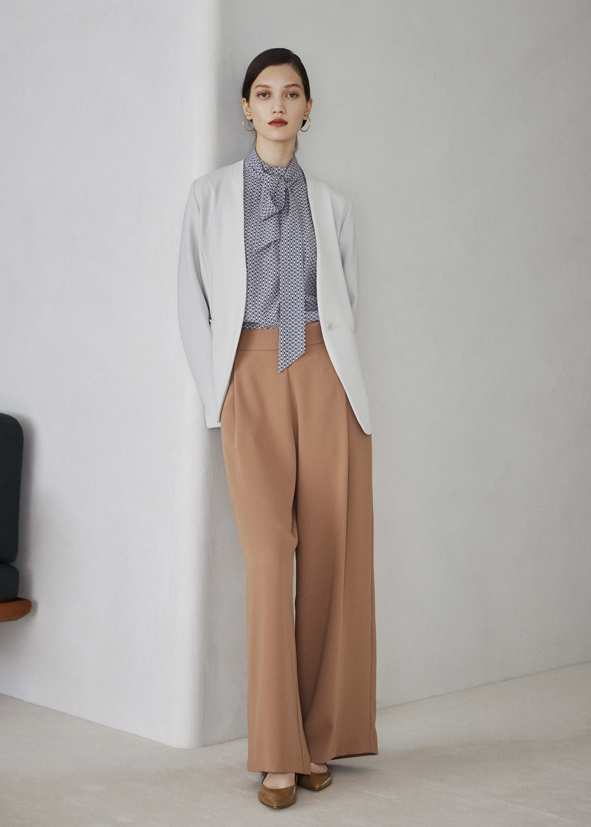 PANTS:サイドタックワイドパンツ(CAMEL)JACKET:ノーカラージャケット(L.GRAY)