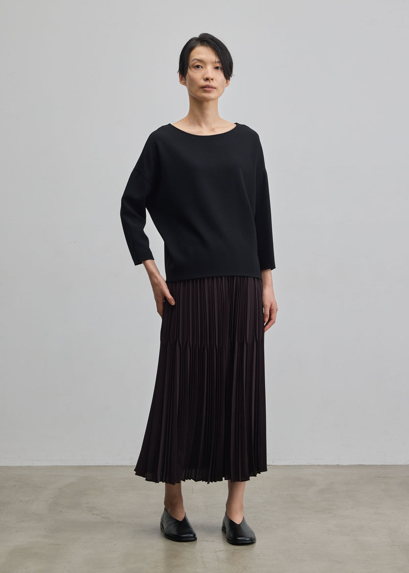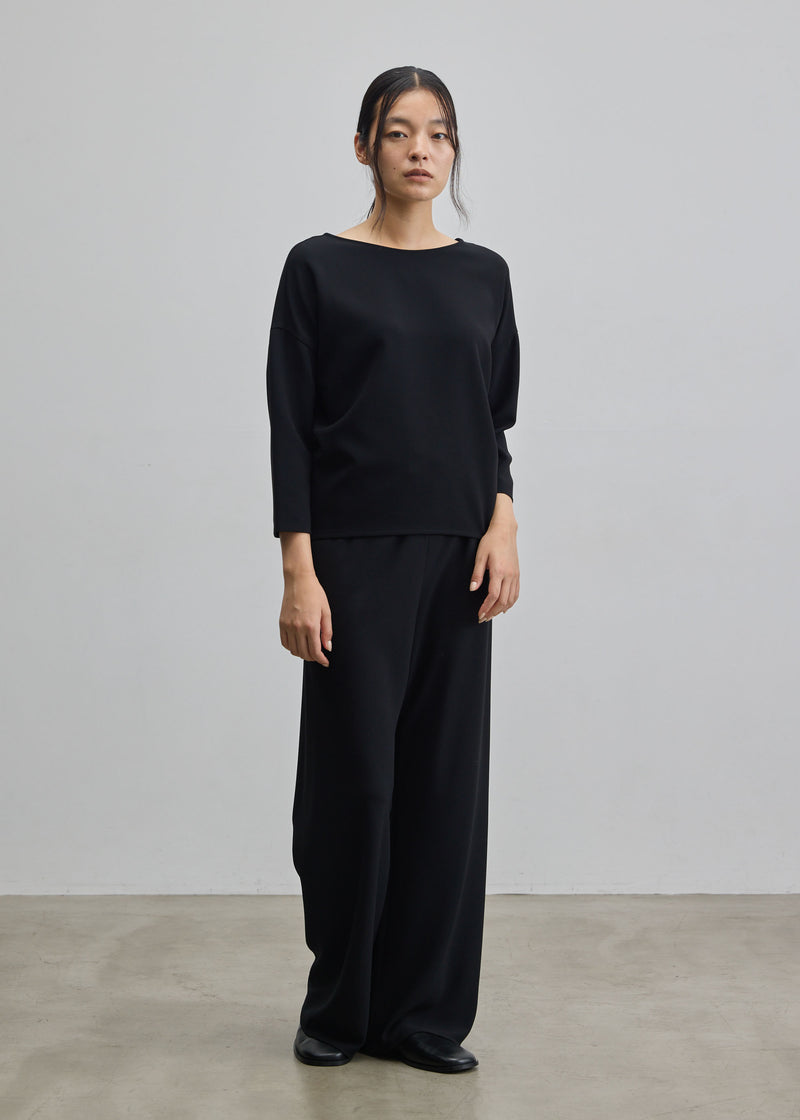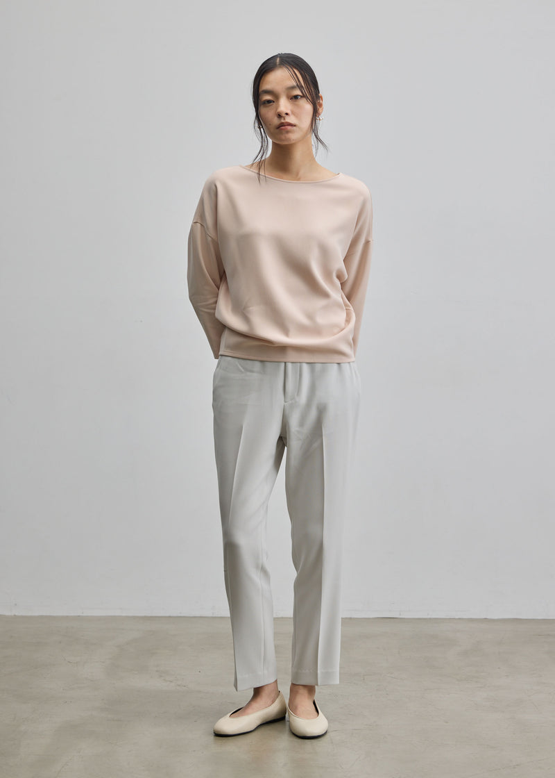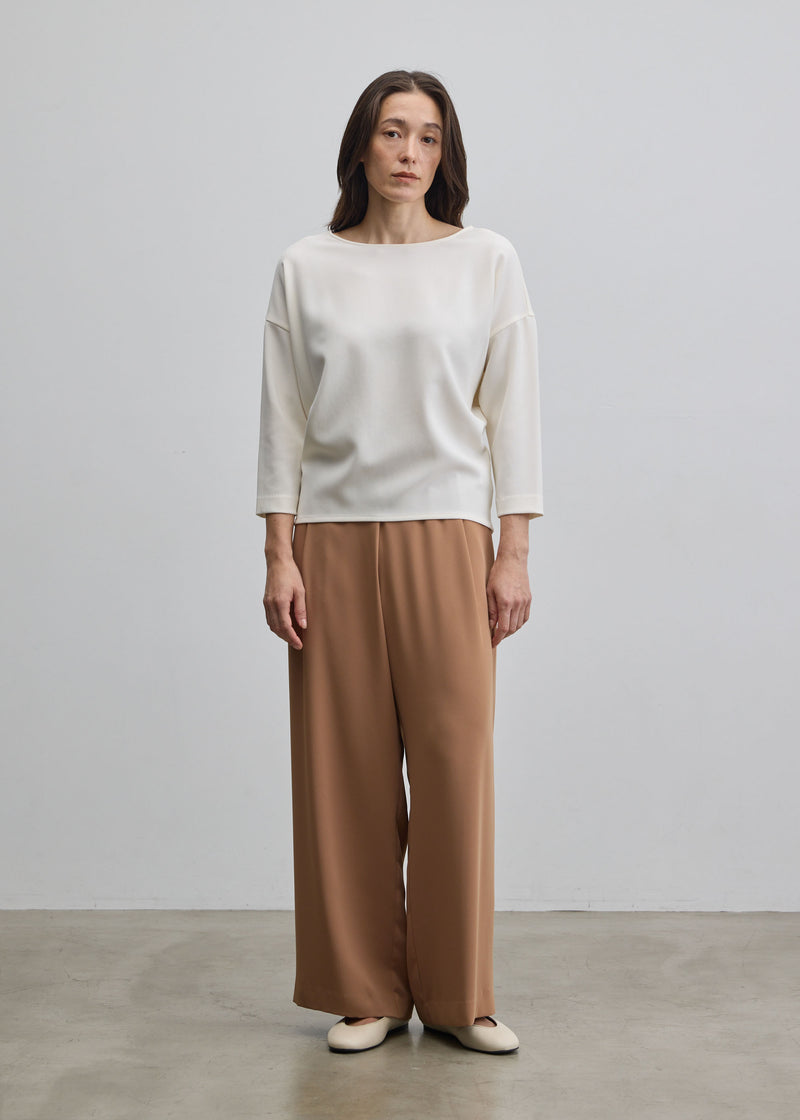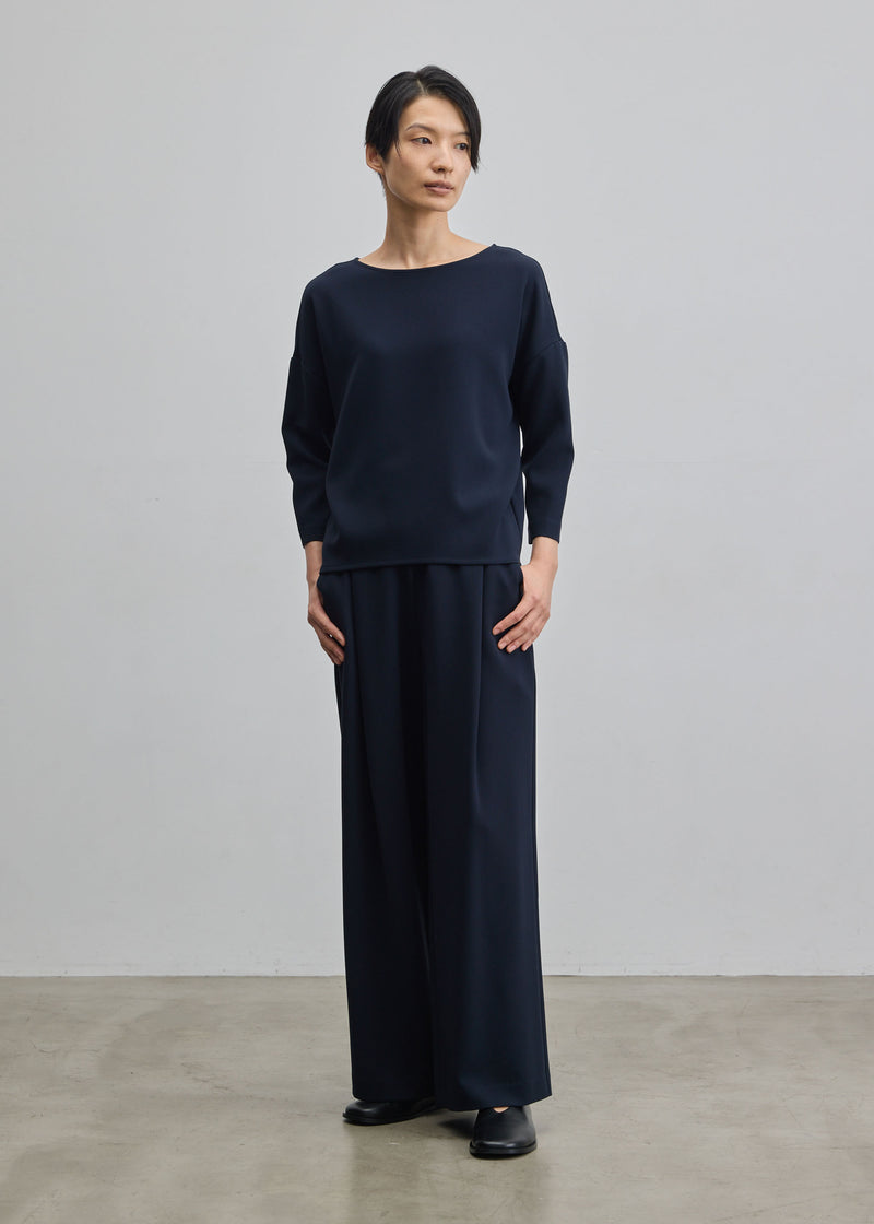 落ち感とドレープが美しい一目で上質感が伝わるダブルクロス生地を採用。テロテロではなく程よく肉厚な生地なので、3Dニットと同じような立体的なシルエットを実現し、ゆとりがある部分も程よくボディに馴染みます。