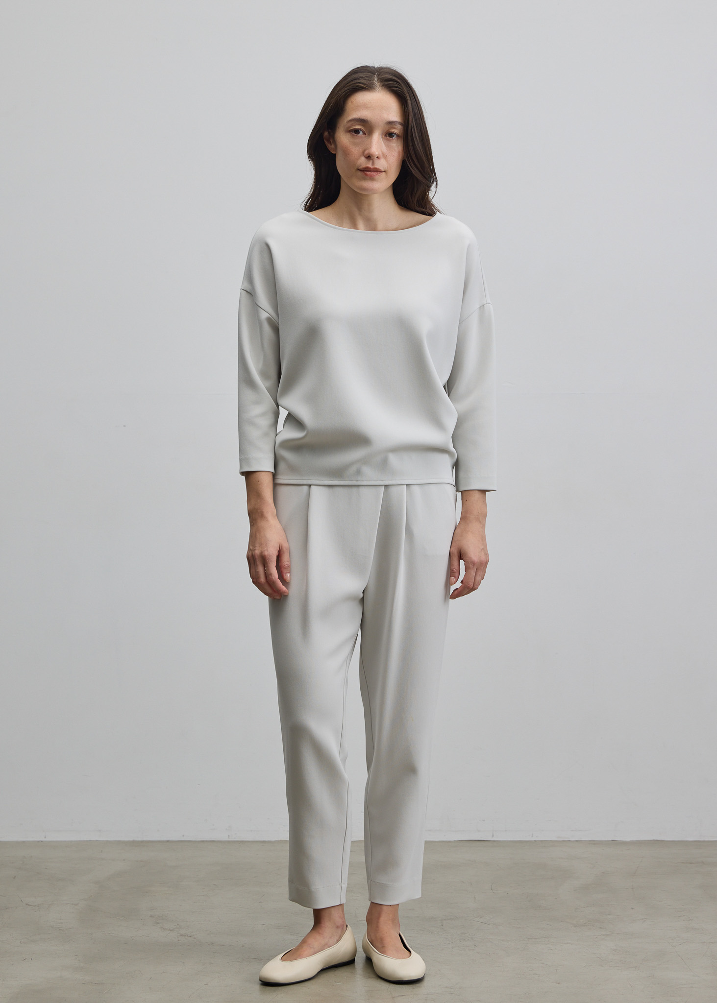 視覚効果でウエストと手首を細く見せてくれる美しいシルエットのコクーンブラウス。ダブルクロスの上質な素材感はセットアップでご着用もおすすめです。