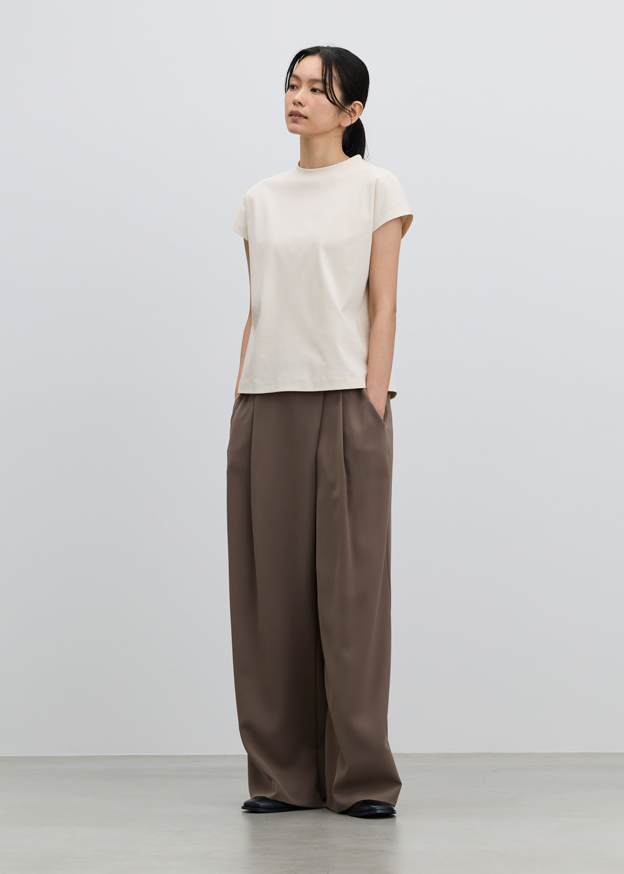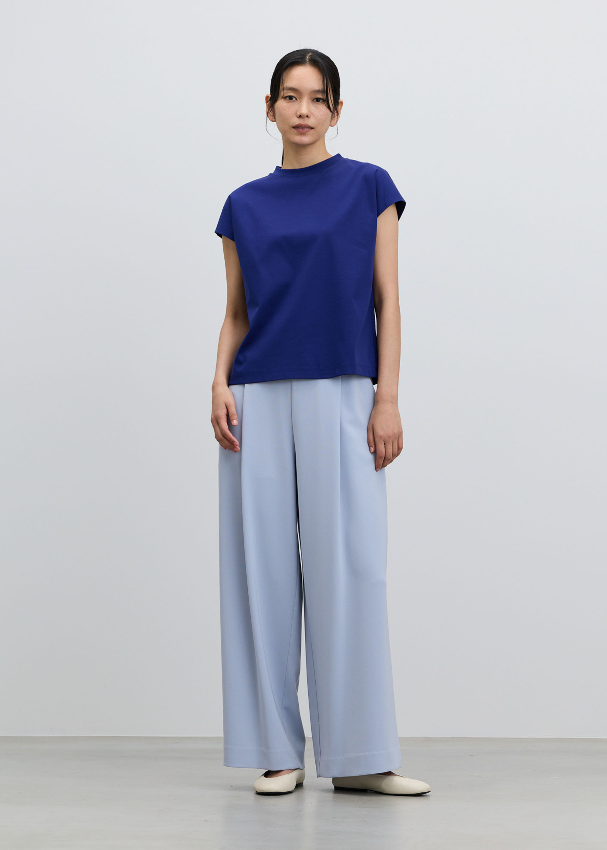 きちんと感と快適さを両立した、大人のためのスタンドカラーのカットソー。