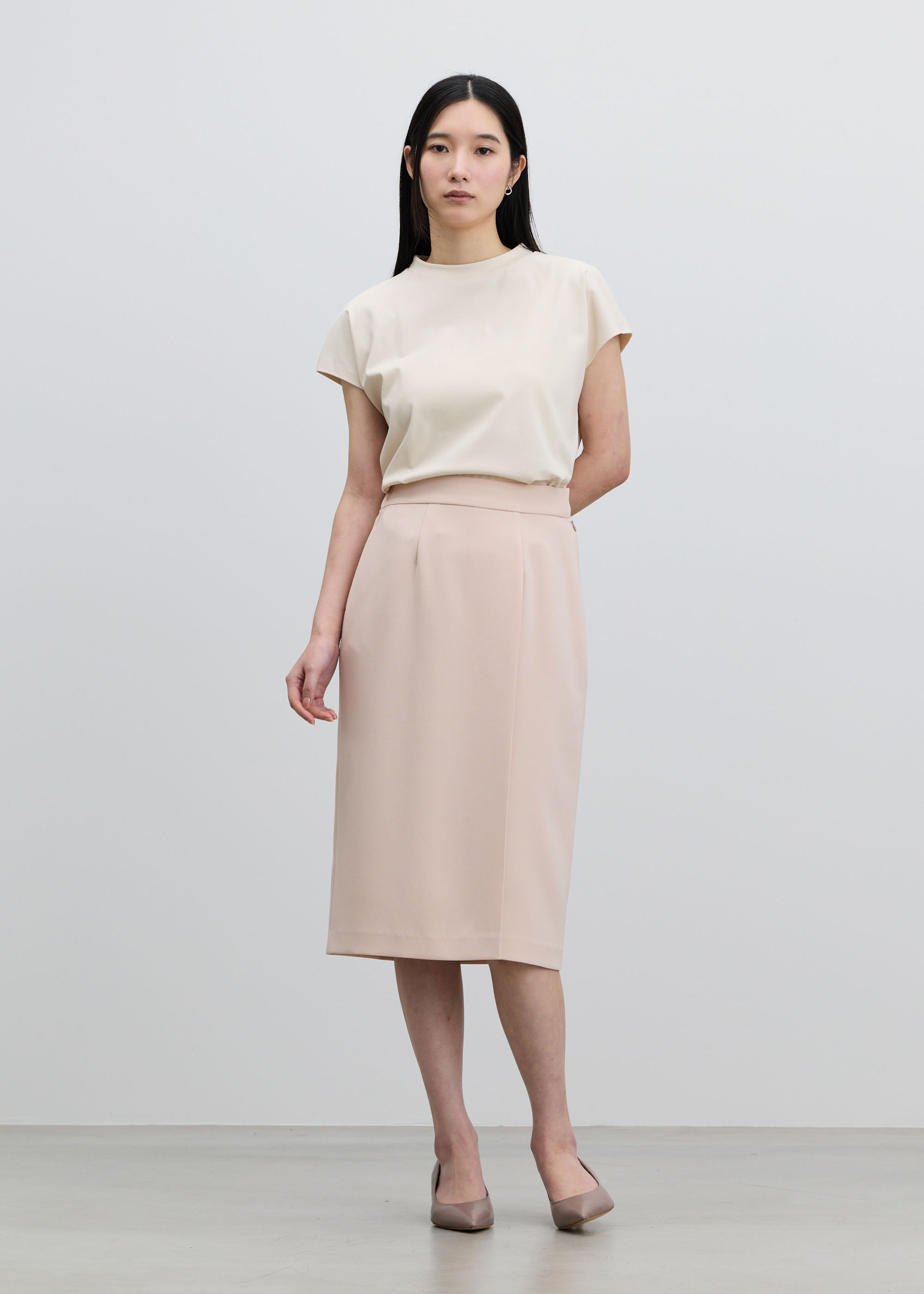 透けにくくハリのある生地は、シワになりにくくご自宅でのお洗濯も可能です。同生地のドルマンスリーブカットソーもぜひご覧ください。