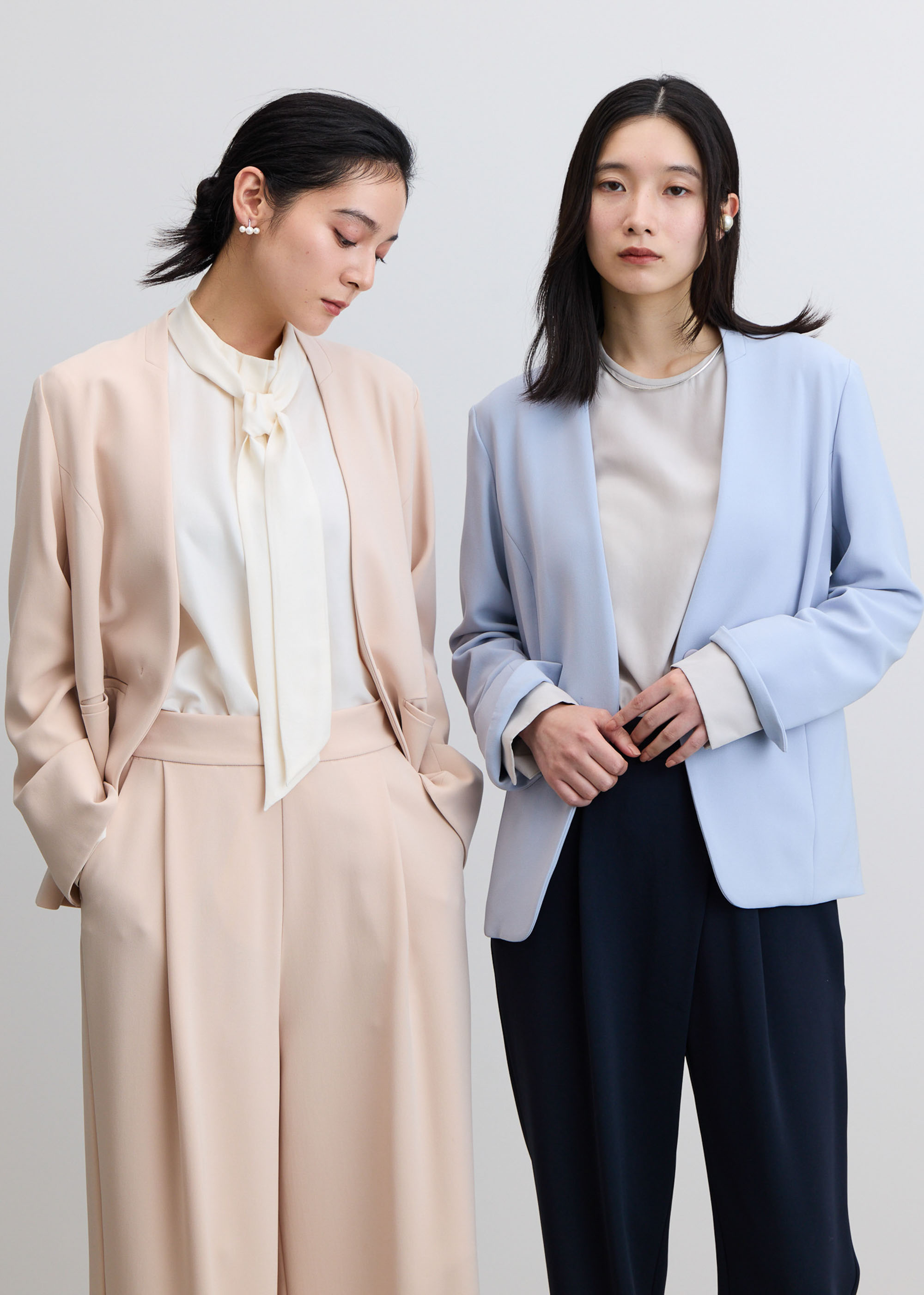 ソージュの代表作ノーカラージャケットがデザインをアップデート。洗練された印象はそのまま、より多様な体型へフィットする着用感を追求しました。