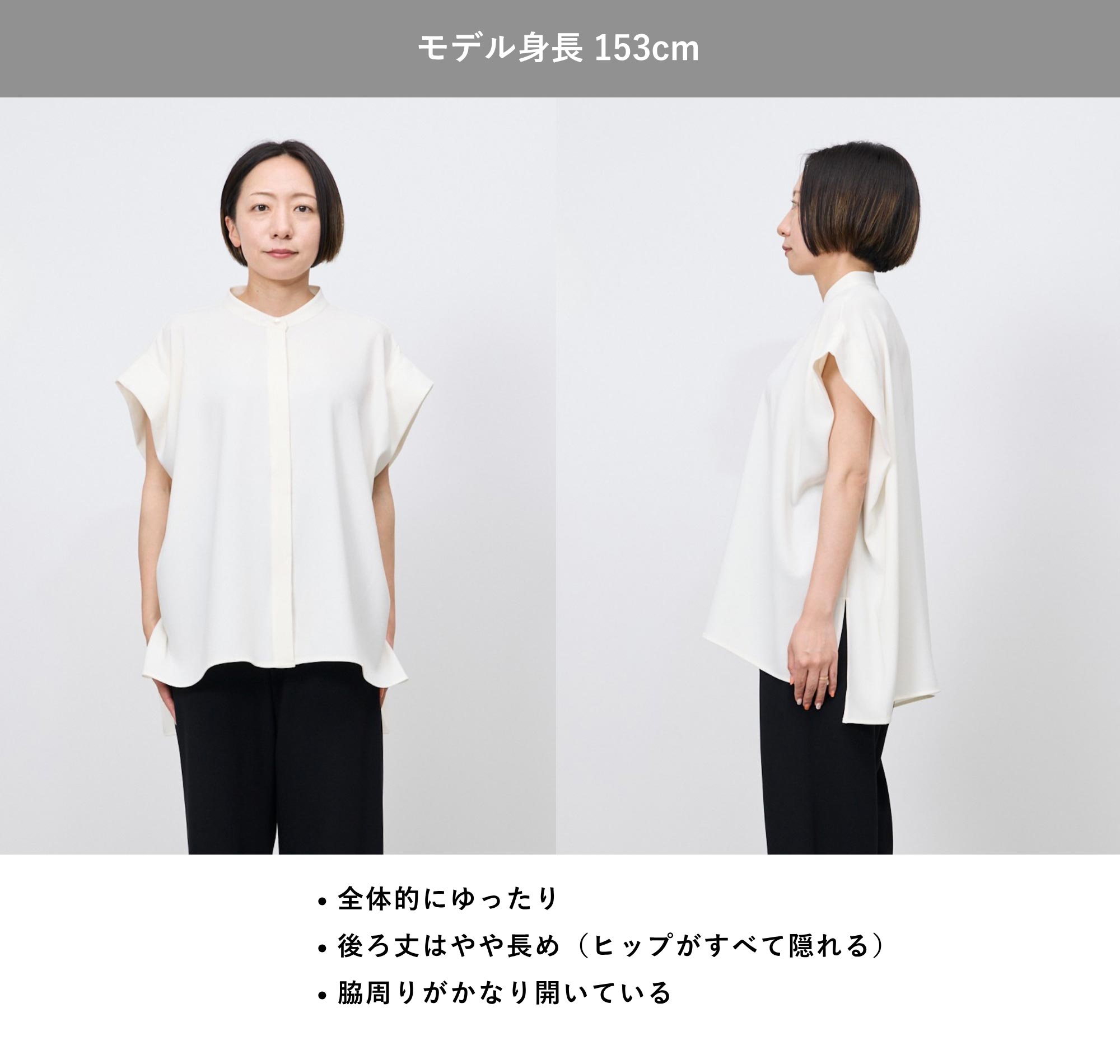 タックの入った立体的なフォルムでどの角度から見ても美しいシルエットに。オーバーサイズのボクシーシルエットが気になるラインをさりげなくカバーします。インスタイルが苦手な方でもアウトで様になるよう、前後差のある丈感にもこだわりました。