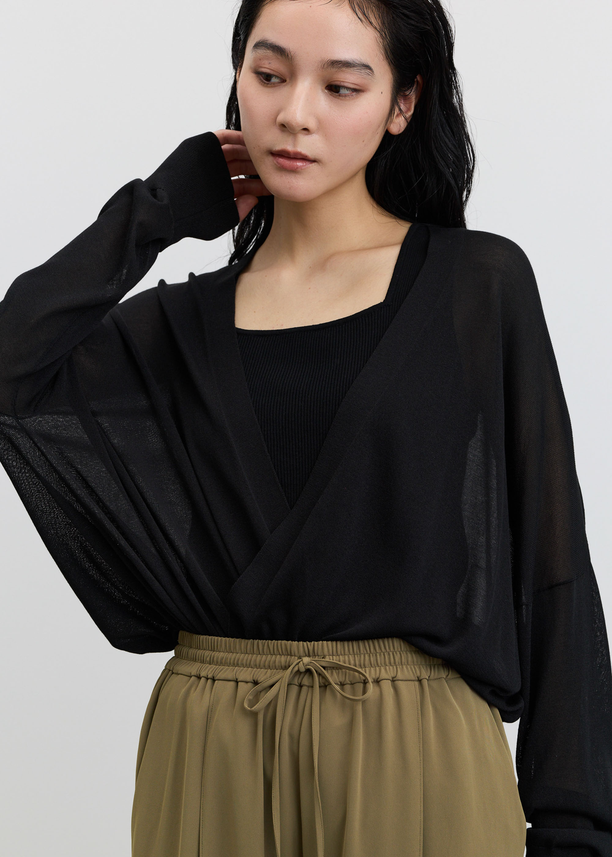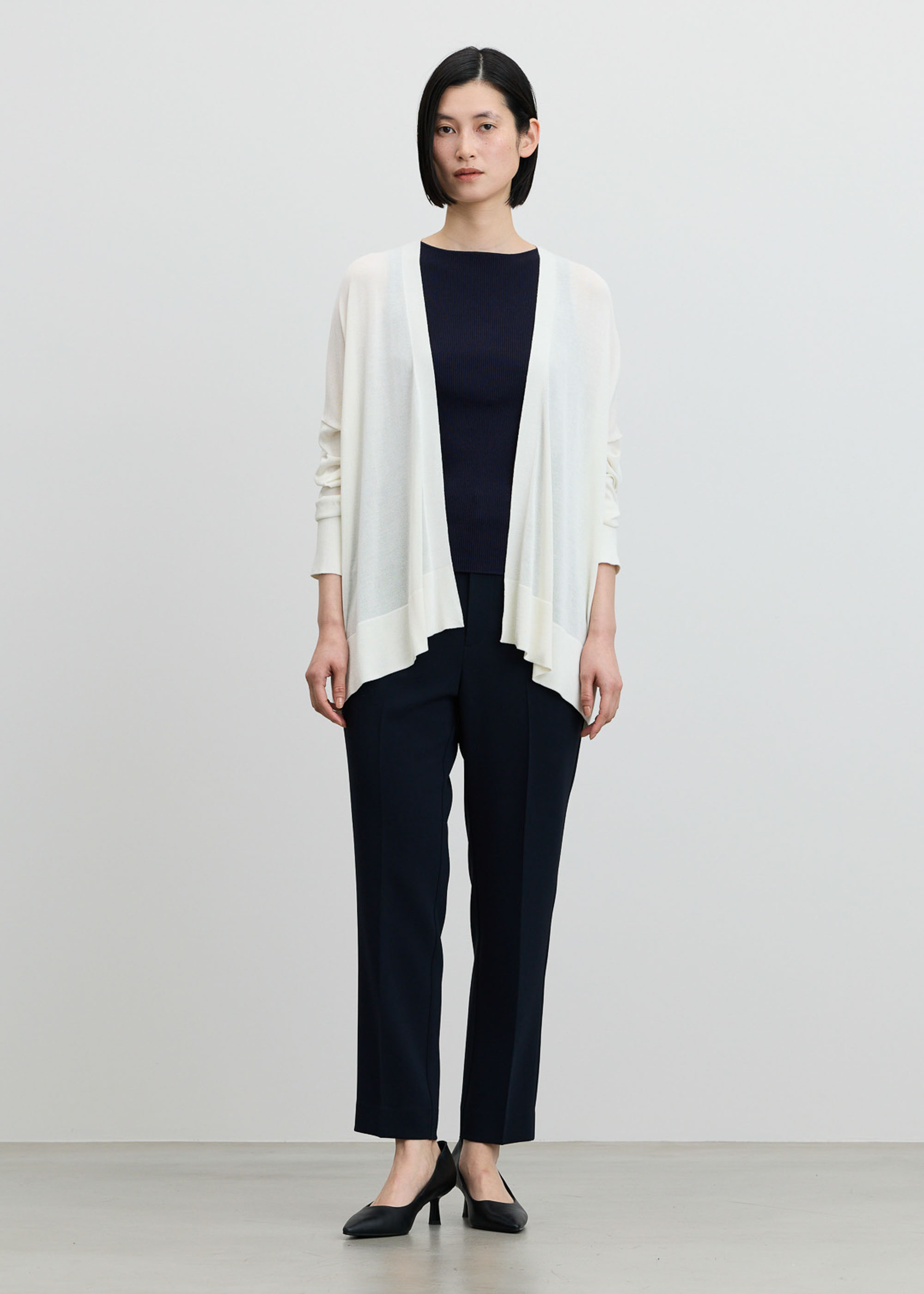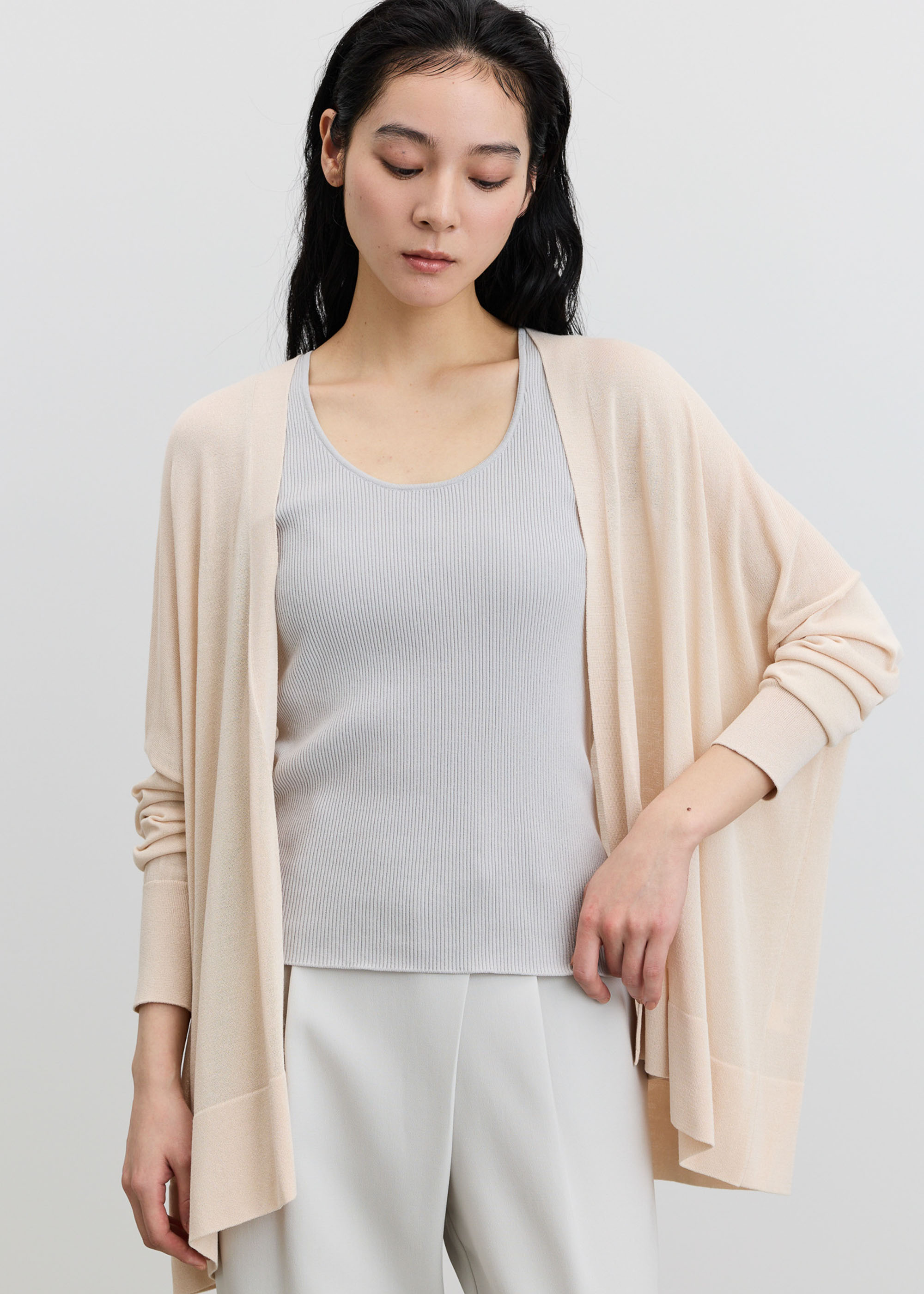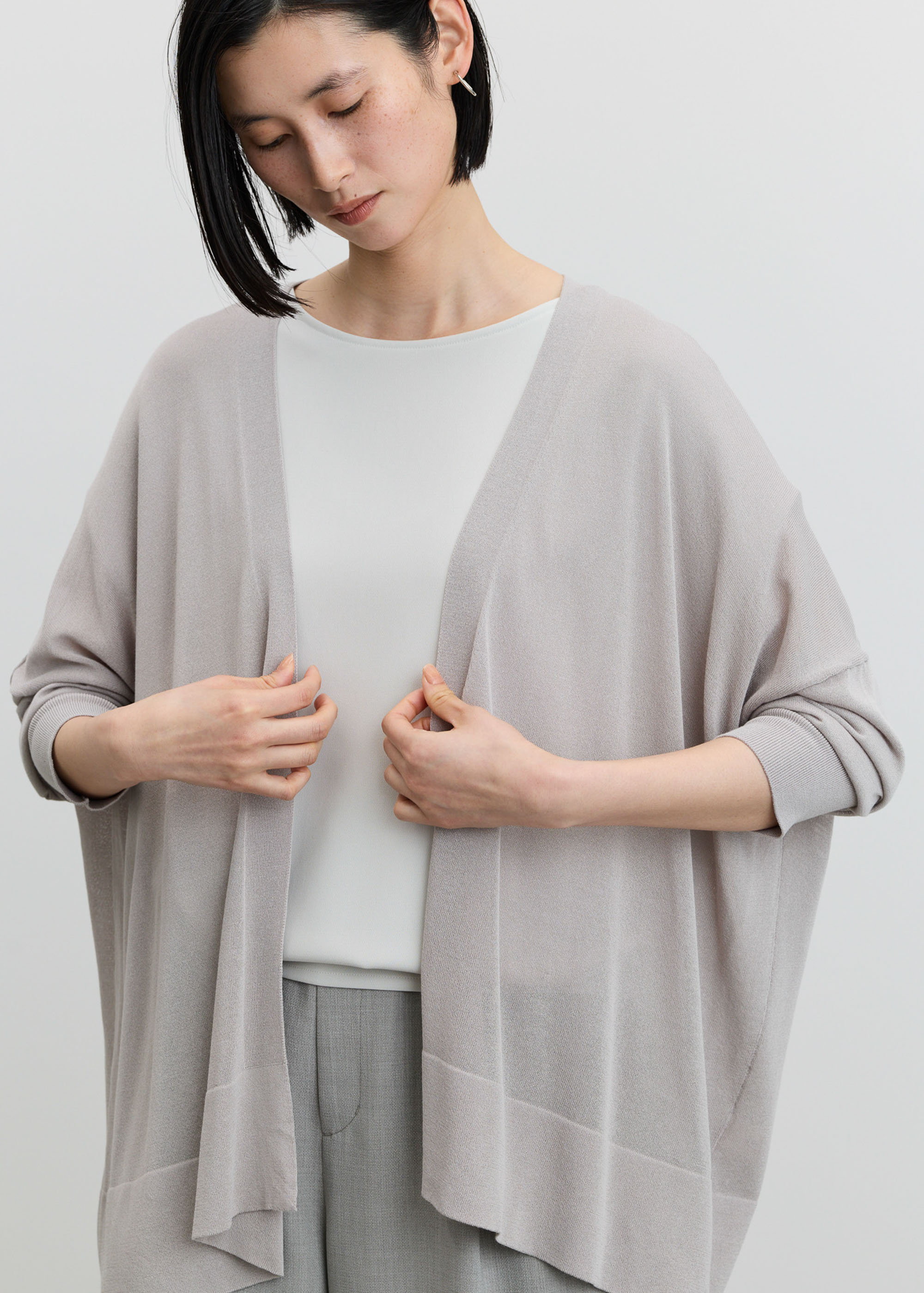 型にはまらない装いで身も心も軽く、体の動きをきれいに演出してくれる、シアードレープカーディガン。マルチな使い方ができる機能的な一枚を、ぜひ幅広いシーンでお役立てください。