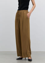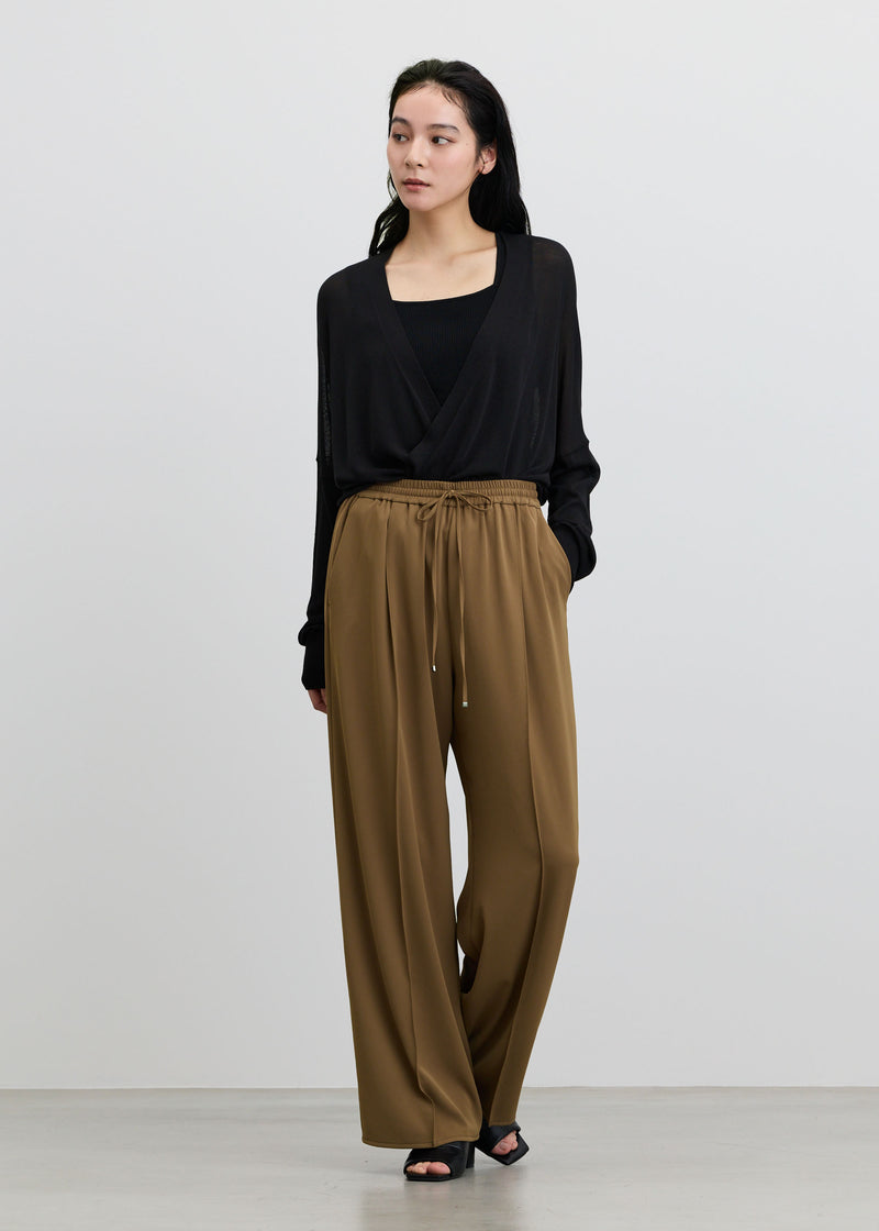 KNIT : 美Neck ノースリーブニット(スクエアネック)(BLACK)PANTS : ヴィンテージサテンドロストワイドパンツ(BROWN)