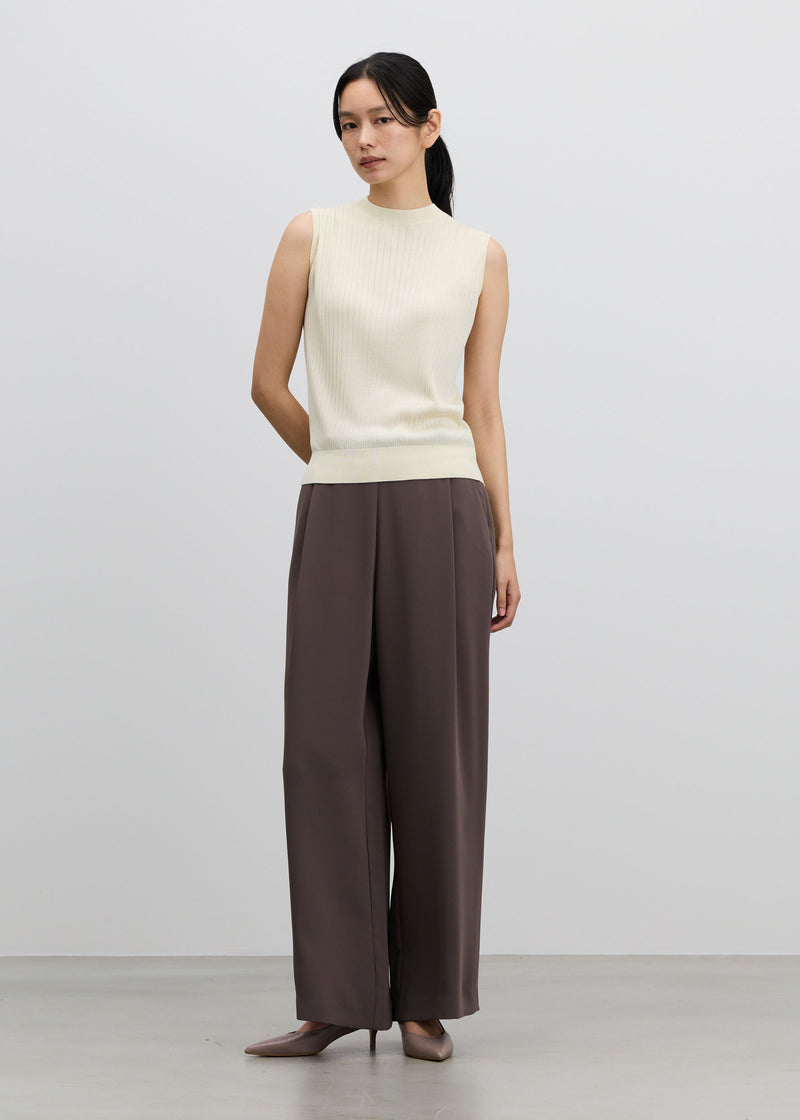 同素材のVネックカーディガンとのアンサンブルもおすすめ。洗練された着こなしをお楽しみください。