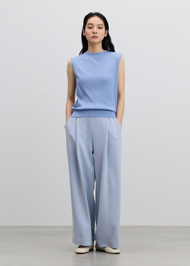 シルク100%で美しいツヤ感のノースリーブニット。さっと着るだけで、ジャケットのインナーとしても一枚着としても活躍します。