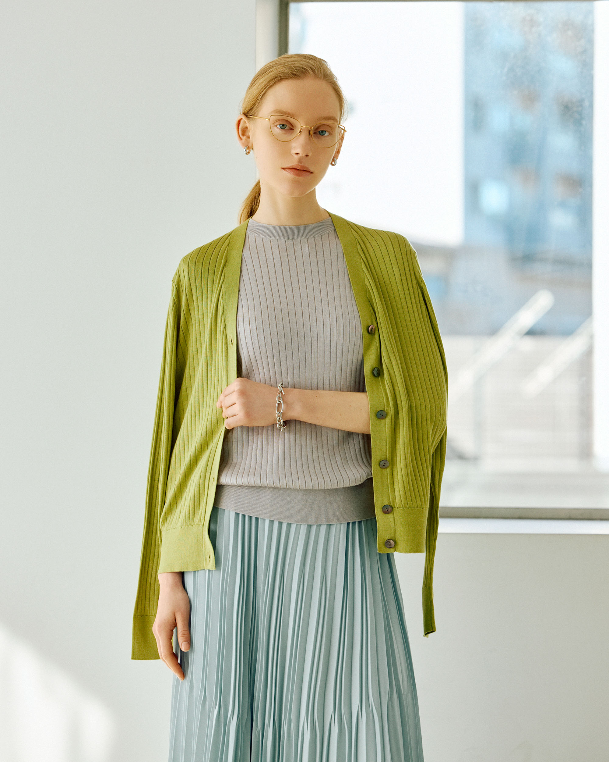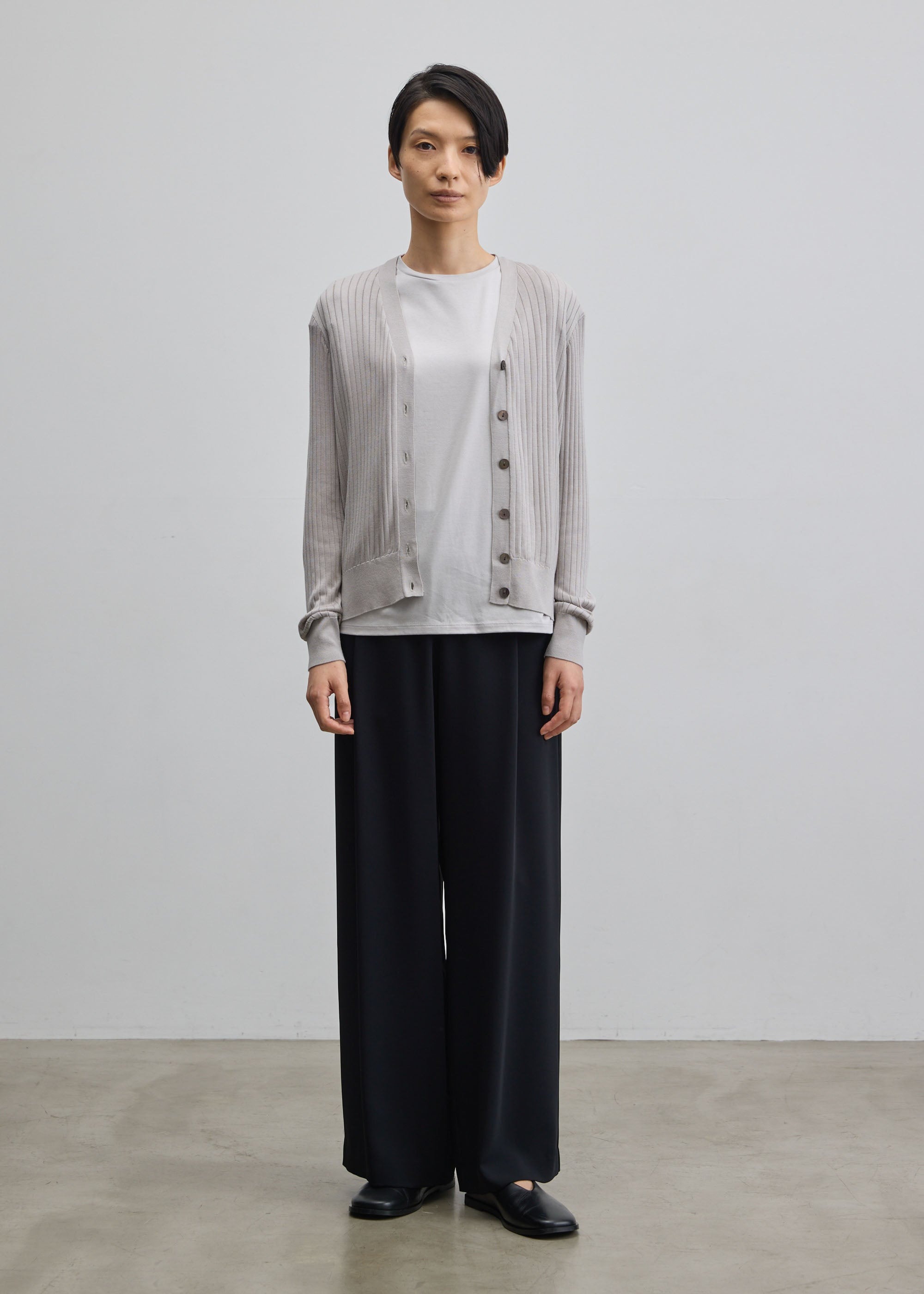 細すぎず太すぎず、絶妙な幅のリブは、シルクの上品な質感にさらなるニュアンスを与え、ニットの落ち感の美しさまでも印象付けます。肌の上をさらりと流れる、エレガントなシルエットもご堪能ください。
