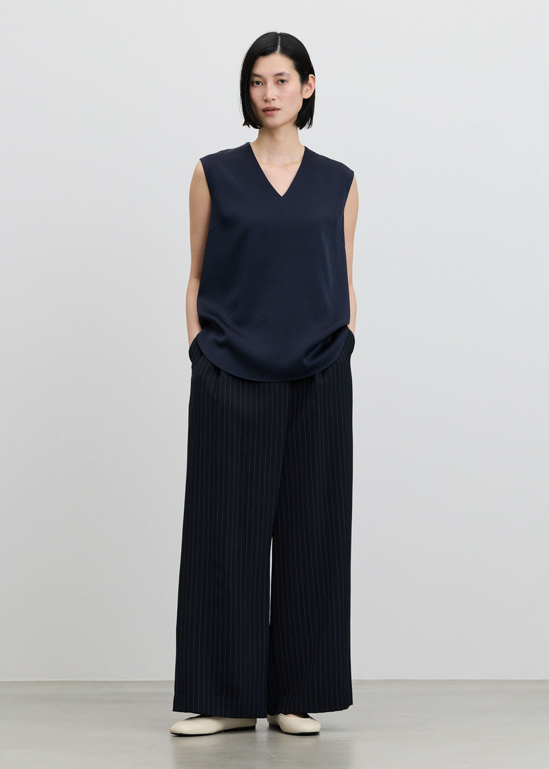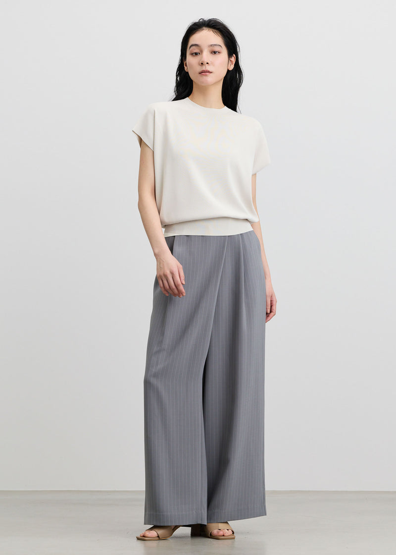 エレガントなシルエットがこなれ感を呼び込む、スラントタックワイドパンツ