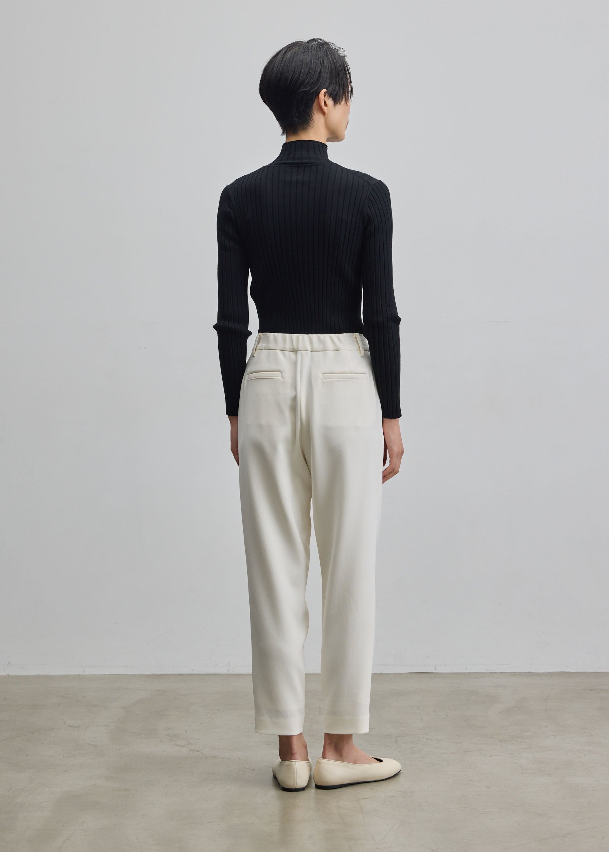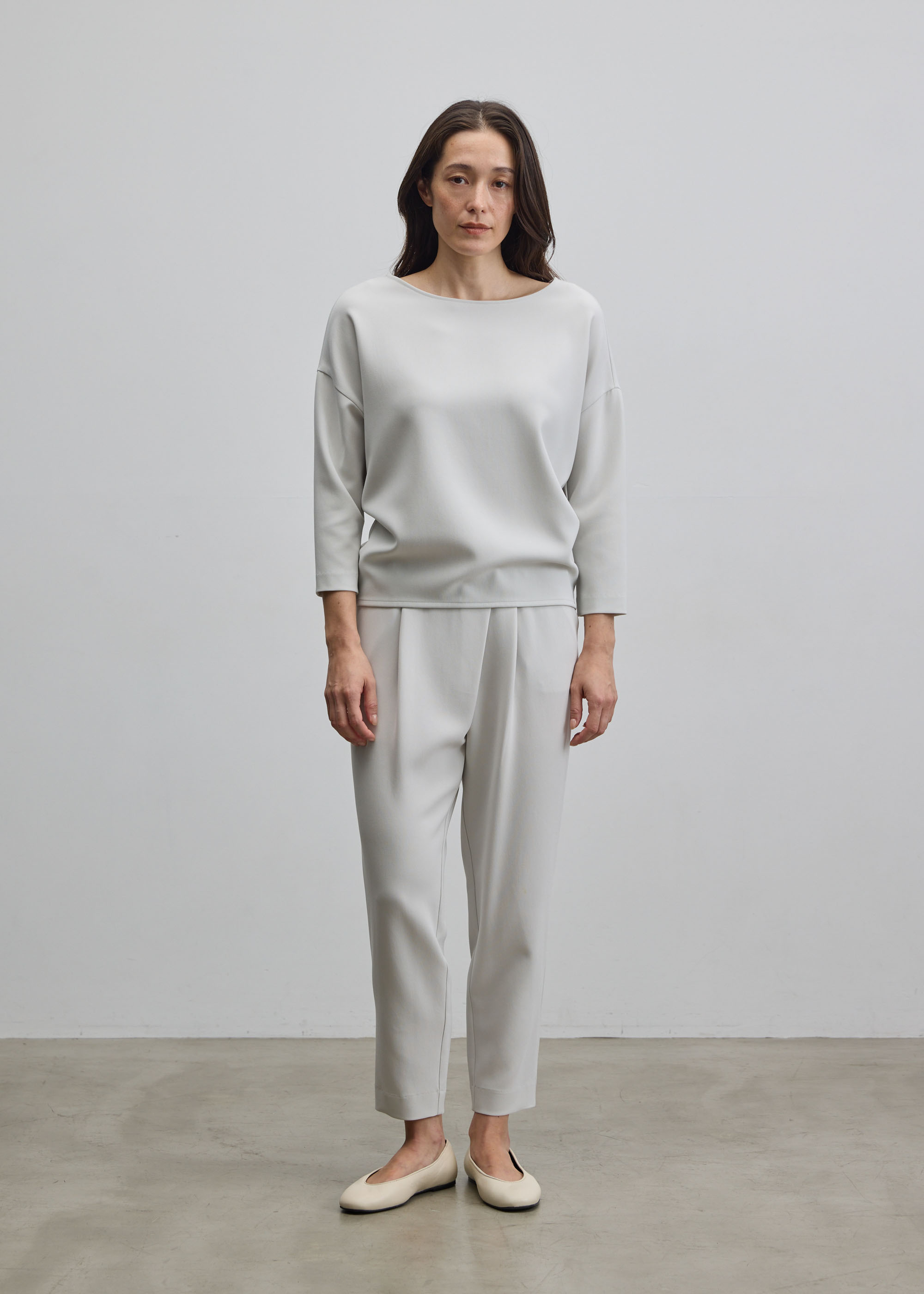カジュアルにもきれいめにもアレンジしやすいテーパードシルエット。大切なオンシーンでも自信を持って着用いただけるように、ショートスリーブコクーンブラウスや2WAYワンピースと同様、オケージョンで使えるエスダブルクロスシリーズの生地を採用しました。