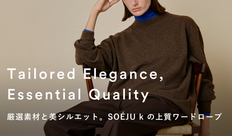 上質な天然素材が特徴のソージュkによる、Super160ウール100%の糸を贅沢に使用したニット。