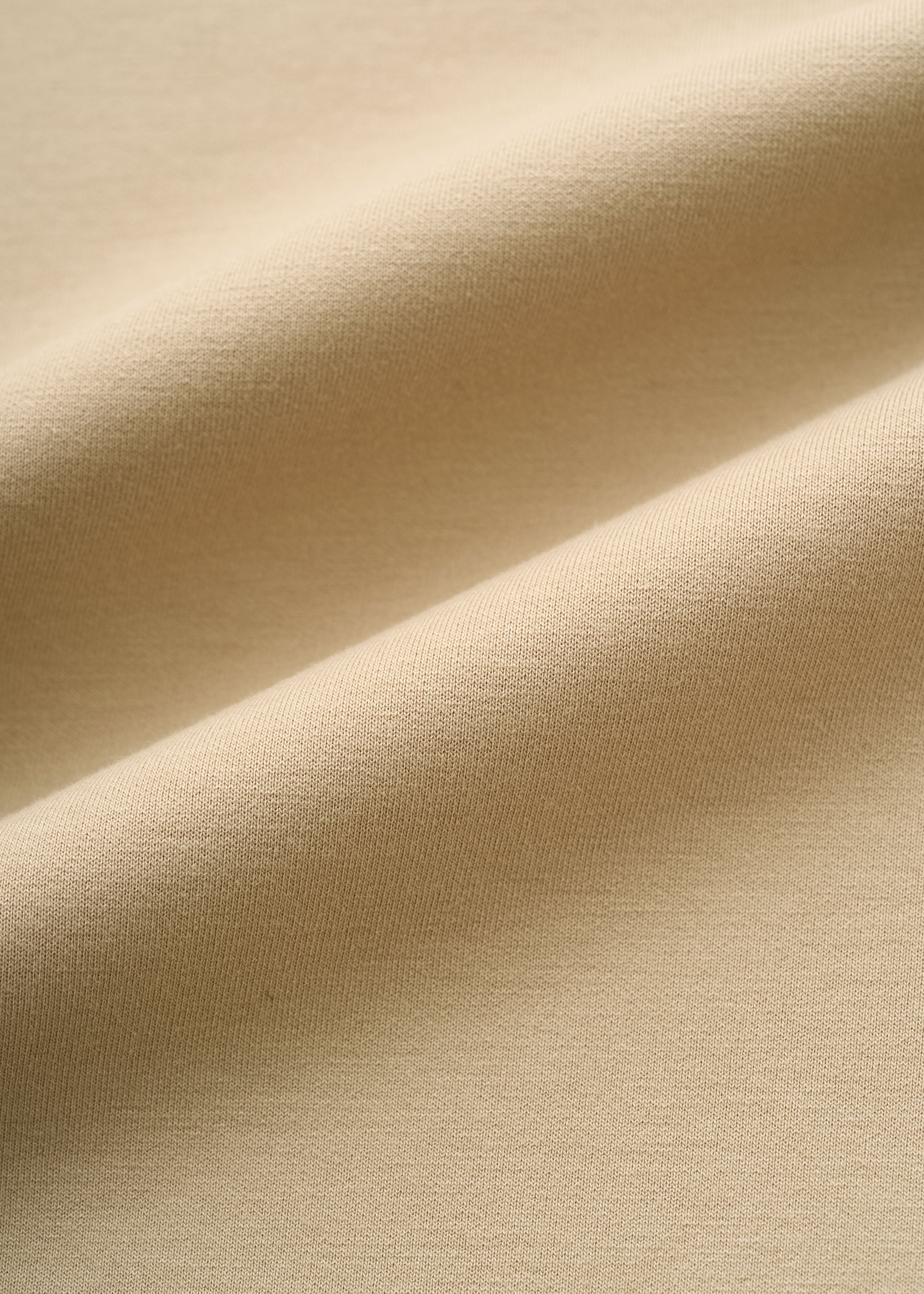 また、生地にもっちりとした弾力性があり、シワになりにくいこともポイント。表面はコットンライクな柔らかな肌あたりですが、裏面はつるっとしていてインナーとの摩擦やひっかかりが起こりにくく、着脱もスムーズです。