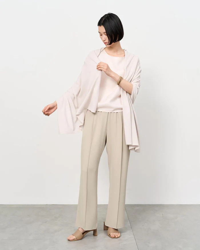 毛玉になりにくくシワになりにくいので、持ち歩きにも便利。バッグからサッと取り出して羽織っていただけます。気温が高い時期は汗をかいてしまっても、マシンウォッシュが可能なのでお家で簡単にケアができるのもポイント。通年にわたって活躍します。