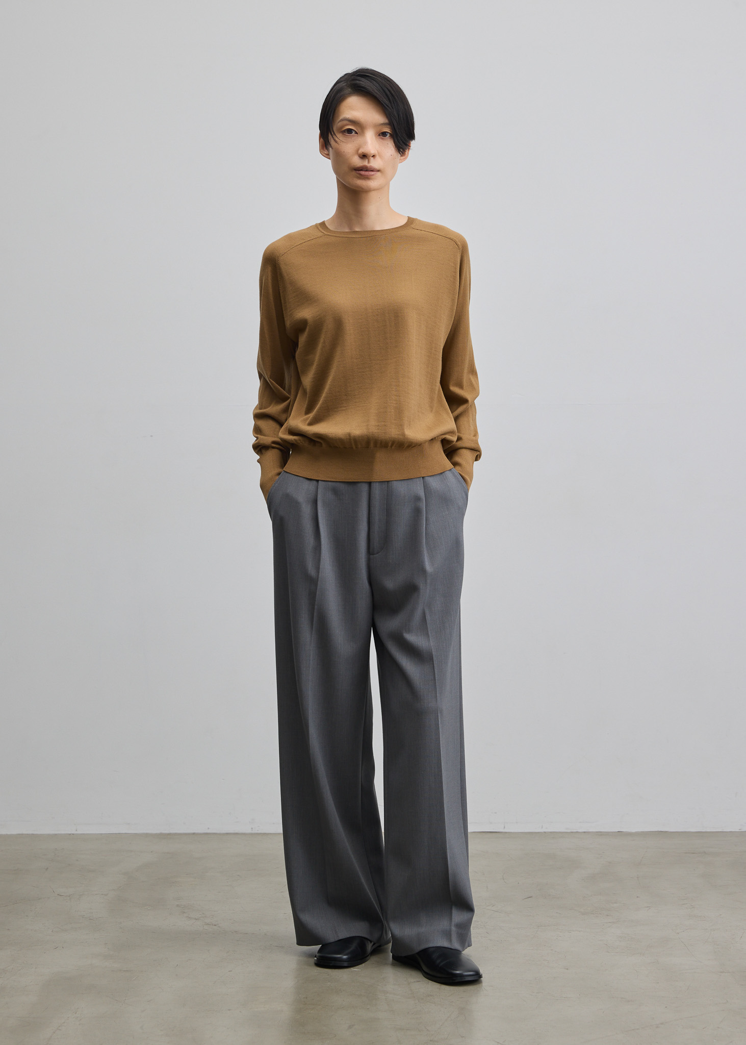 イタリア・ビエラヤーン社企画の糸を密に編み込んだ生地はさらさらとした肌触り。吸湿性に優れ熱がこもりがちなときも快適な着心地が続きます。毛羽が少なくフラットな糸が洗練された印象をプラス。ご自宅での手洗いが可能な上、毛玉防止加工を施しておりお手入れも簡単です。
