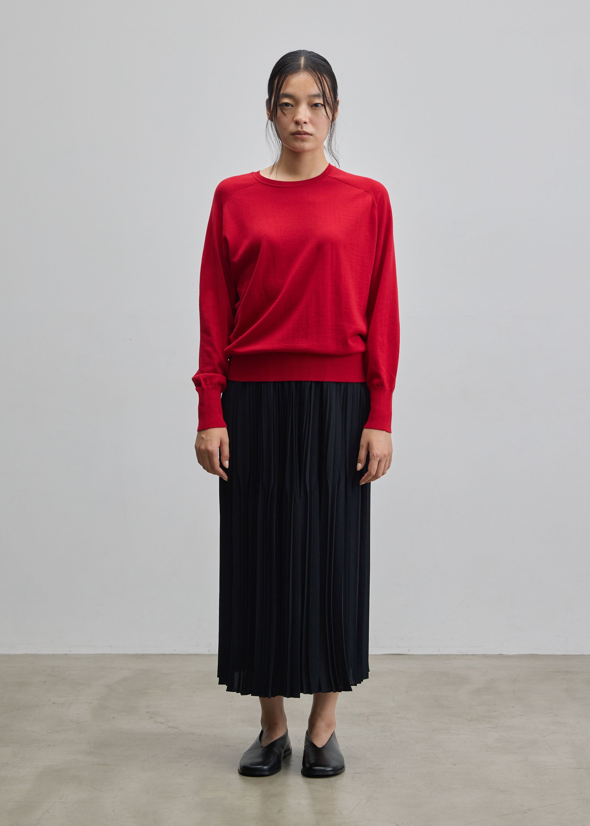袖と身頃のつながりが滑らかなドルマンスリーブデザインで、どんな肩幅もスマートなラインを作ります。だらしなく見えないようあえて詰めた襟ぐりと、メリハリのある女性らしいシルエットを作り出す袖口と裾のリブがキレイ見えのポイントです。
